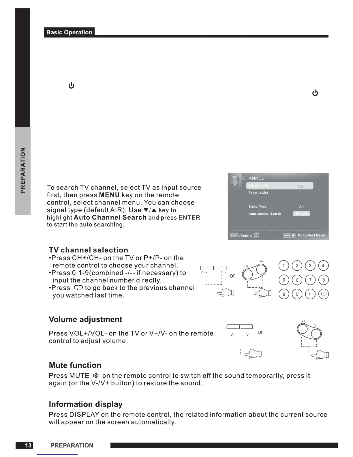 Press on the remote control(or on the up of the TV) to turn on the power to the TV.