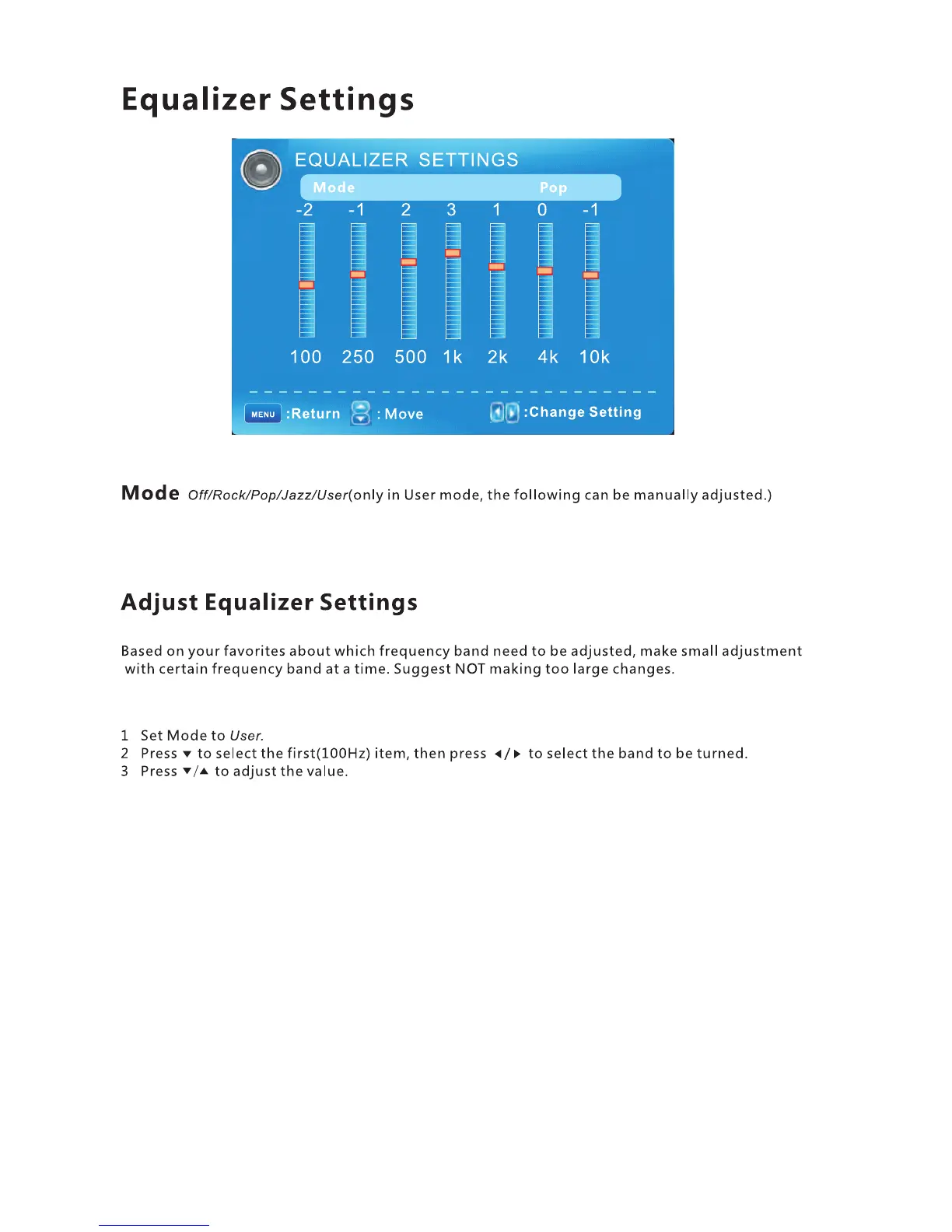 ProScan PLED1960A - Equalizer Settings; Equalizer Mode Selection; Adjusting Equalizer Frequency Bands