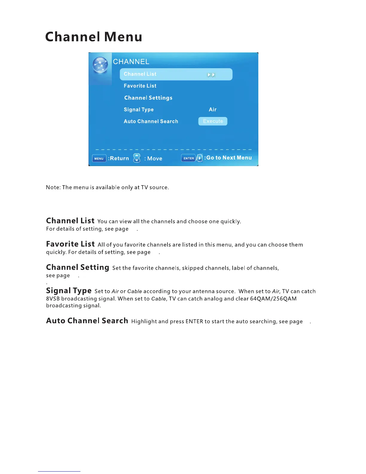 ProScan PLED1960A - Channel Management; Channel List and Favorite List; Channel Settings Configuration; Signal Type and Auto Search