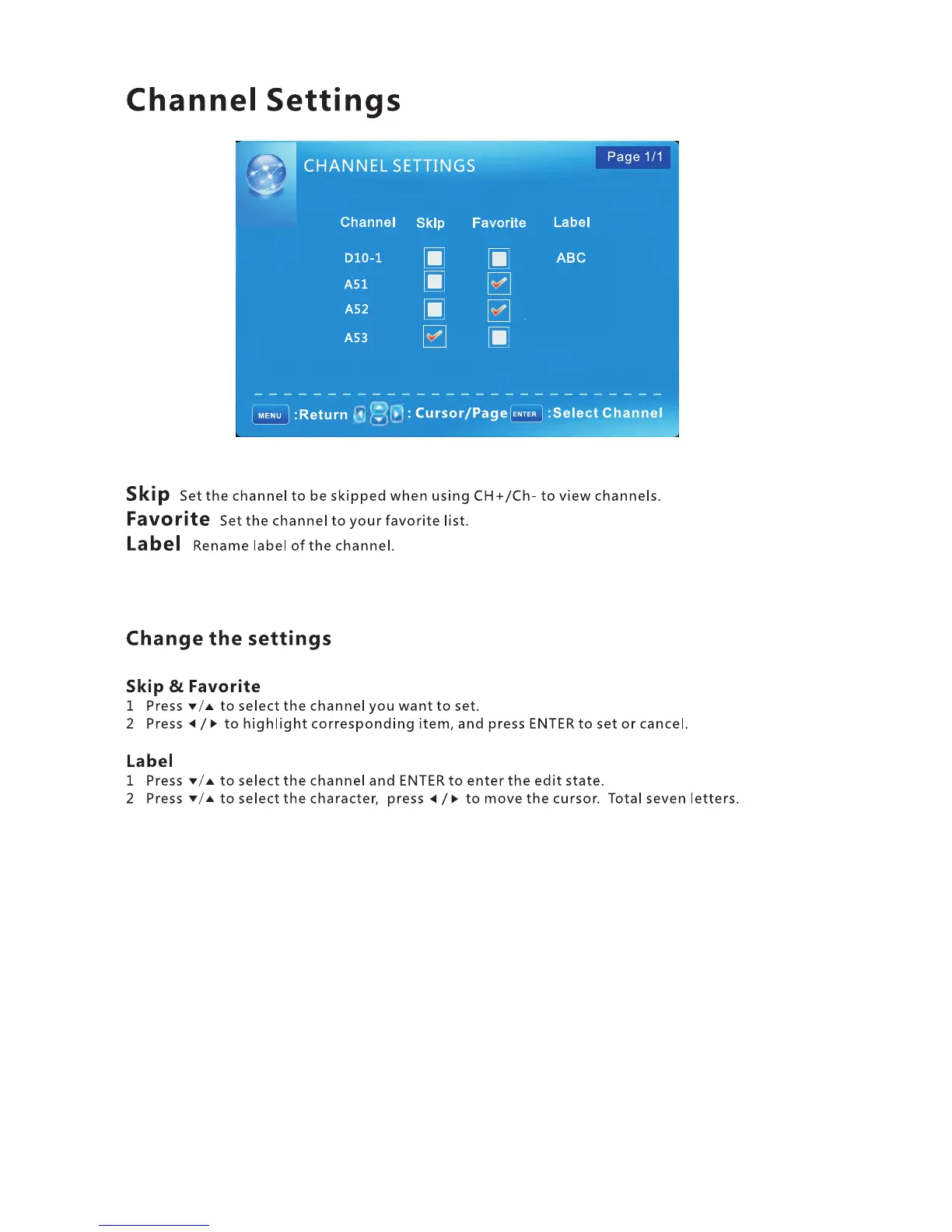 ProScan PLED1960A - Channel Settings Details; Skip and Favorite Channel Options; Renaming Channel Labels