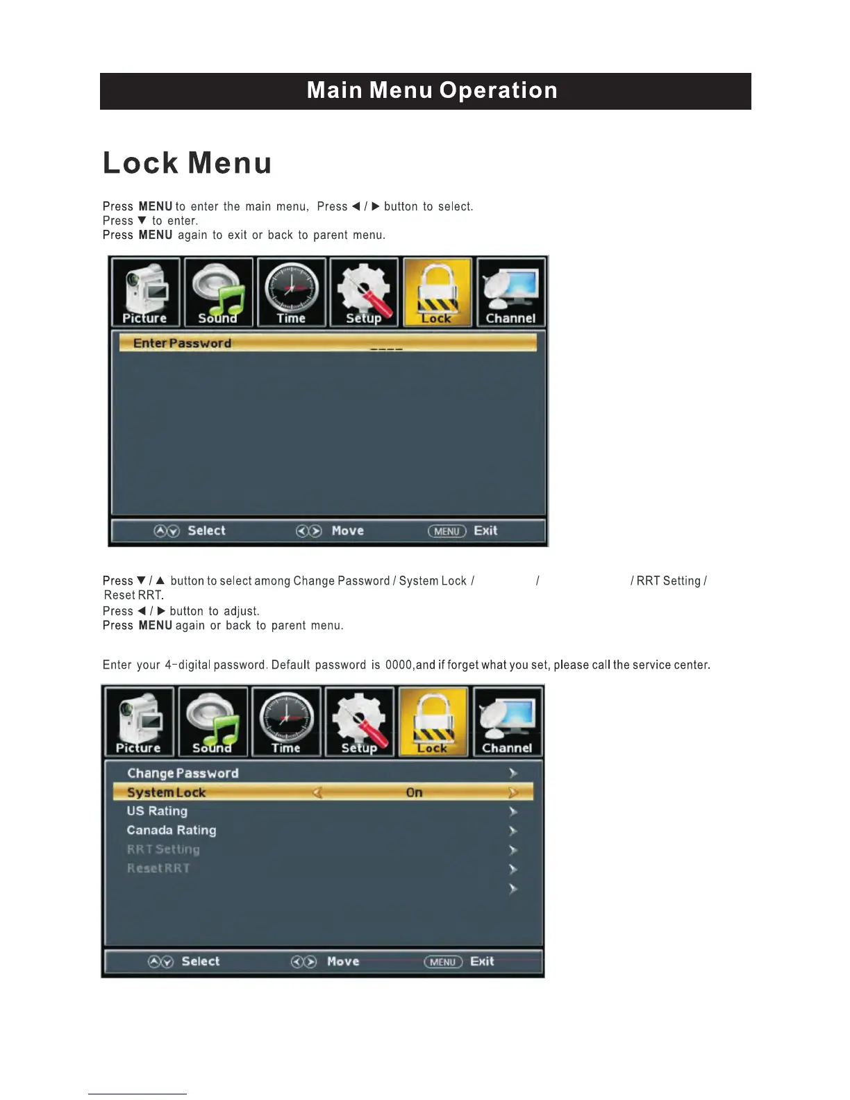 ProScan PLED2243A-C - Lock Menu Operation; Change Password; System Lock