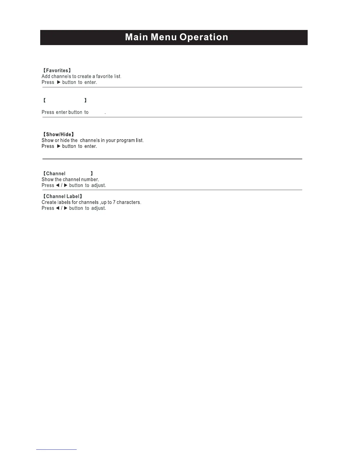 ProScan PLED2243A-C - Channel Menu Management; Favorites and Channel List; Show;Hide Channels; Channel Number and Label