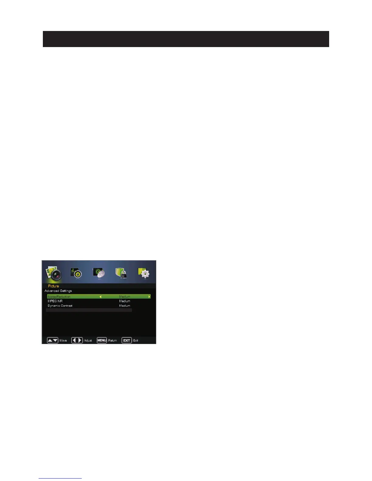 Off Select to turn off MPEG noise detecti on.