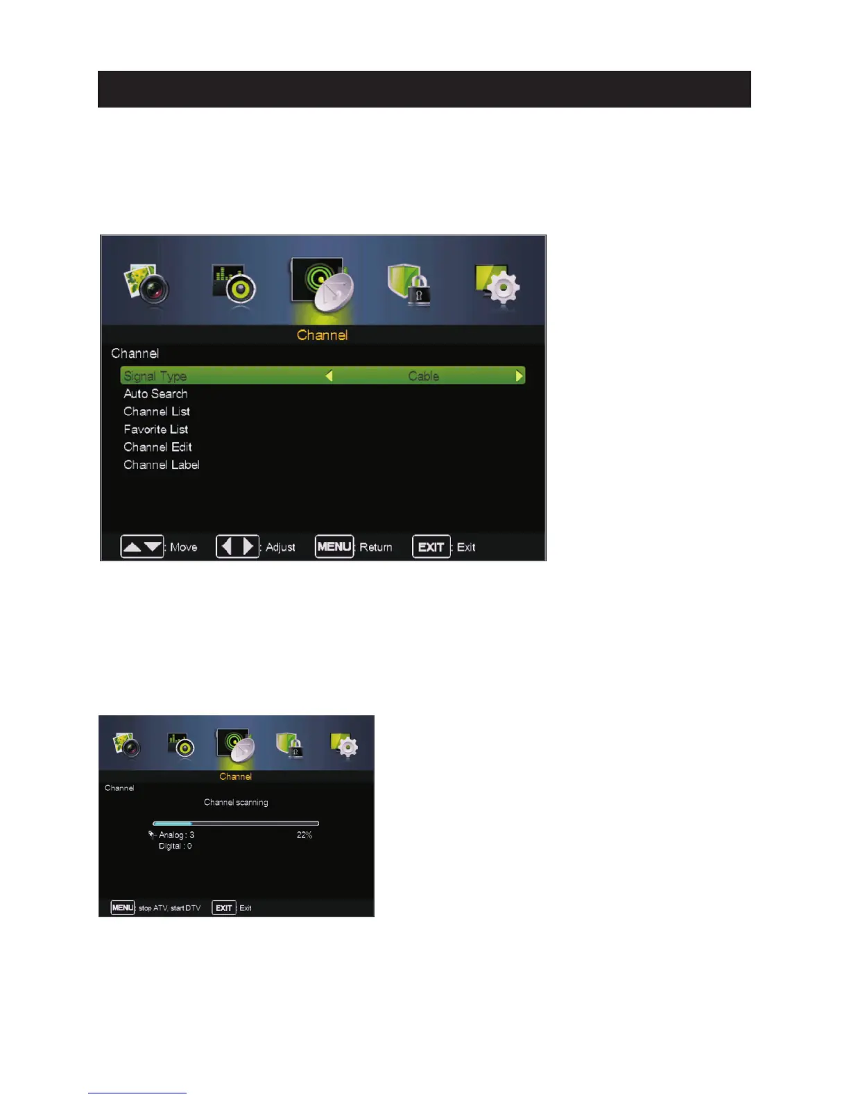 Before execute auto channel search,please confirm your antenna type is Air or Cable.