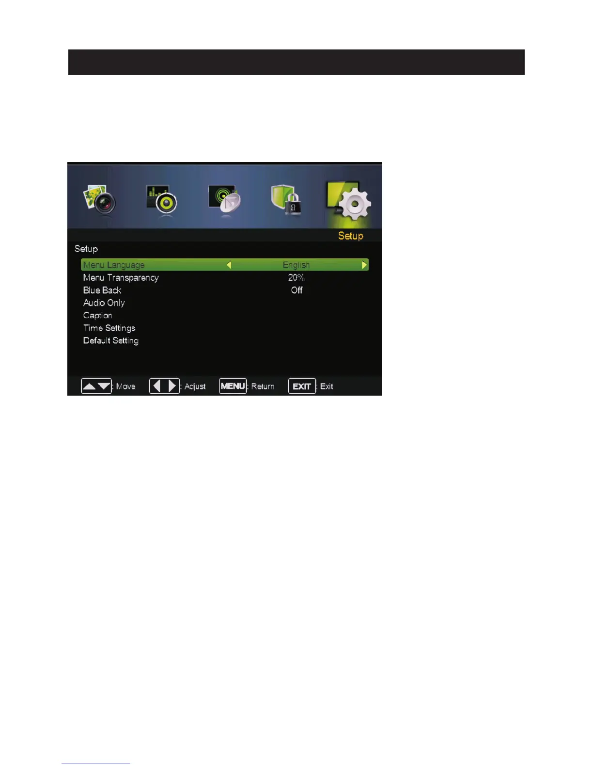 1. Press ▼ / ▲ button to select the option that you want to adjust in the SETUP menu.