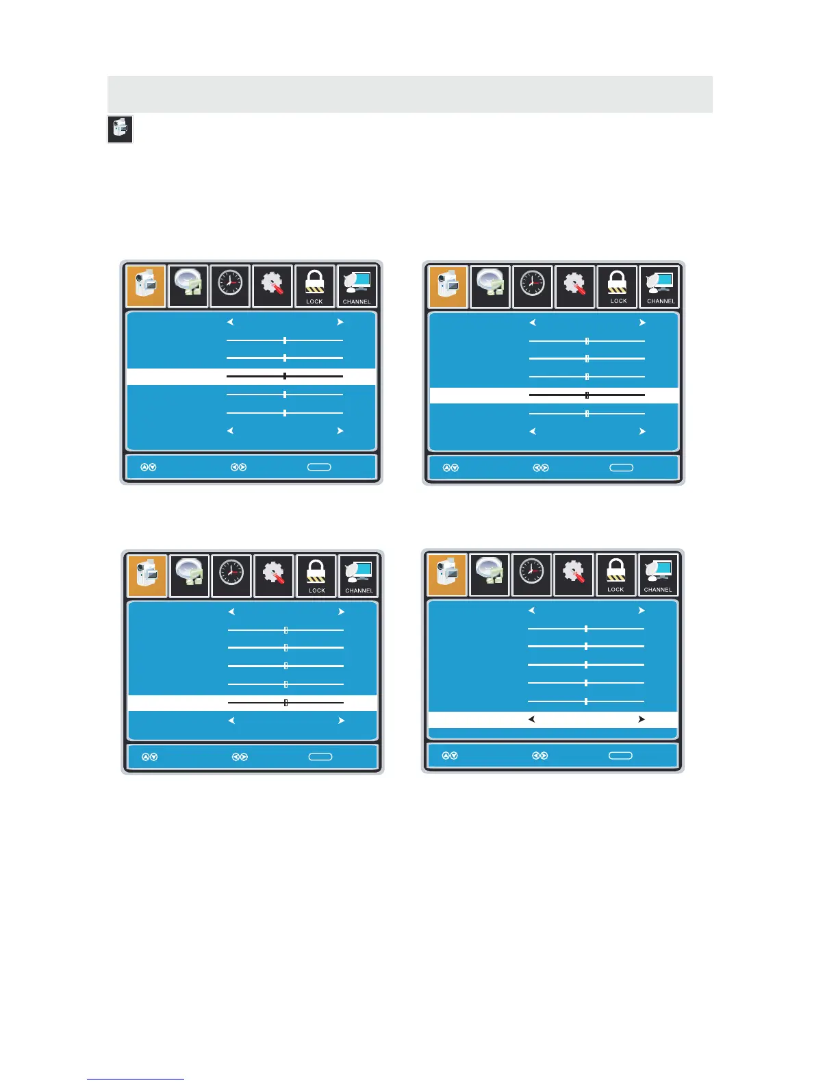 Press the MENU button on the remote control. Navigate using the ◄► buttons to select PICTURE.