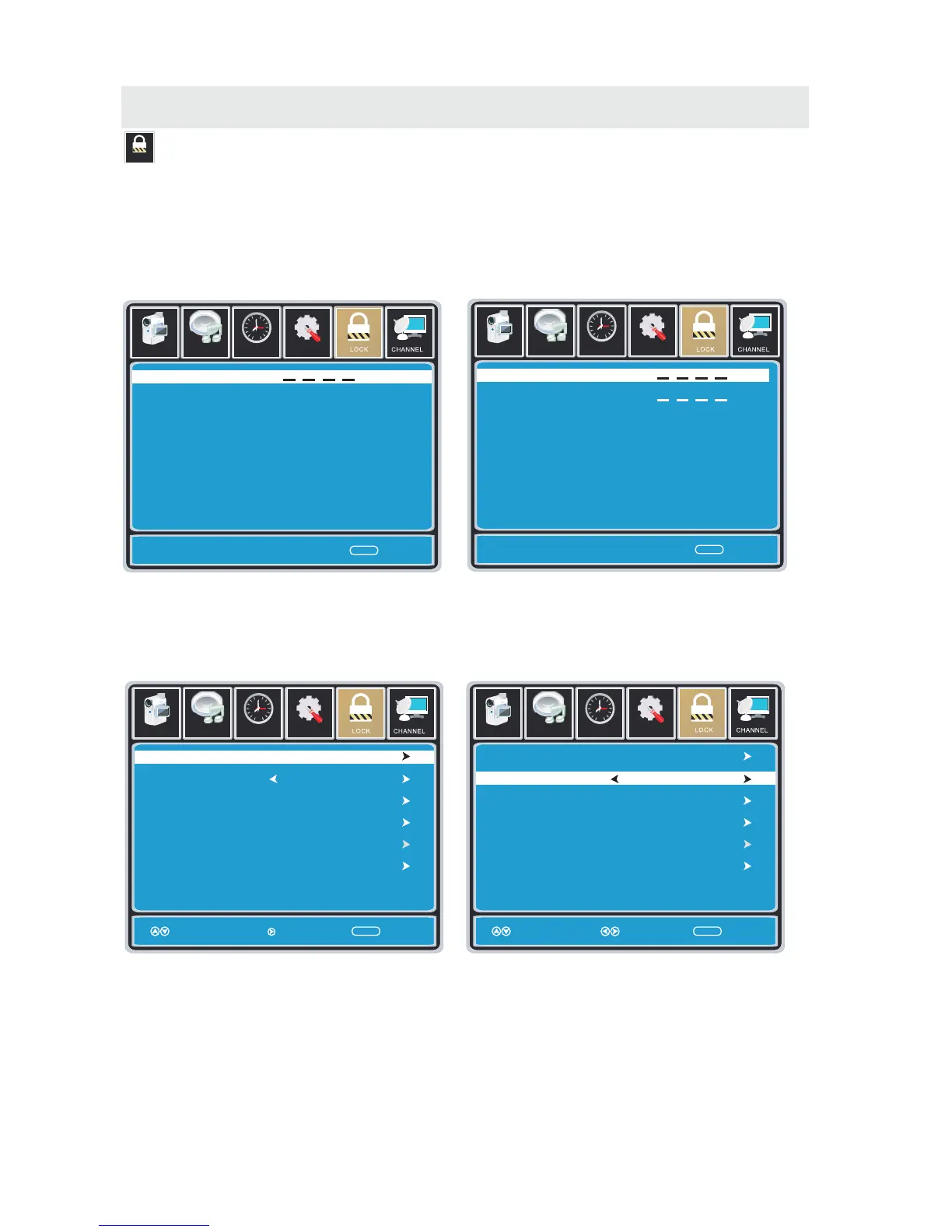 In the LOCK(PARENTAL) menu you may block television by inputting passwords.