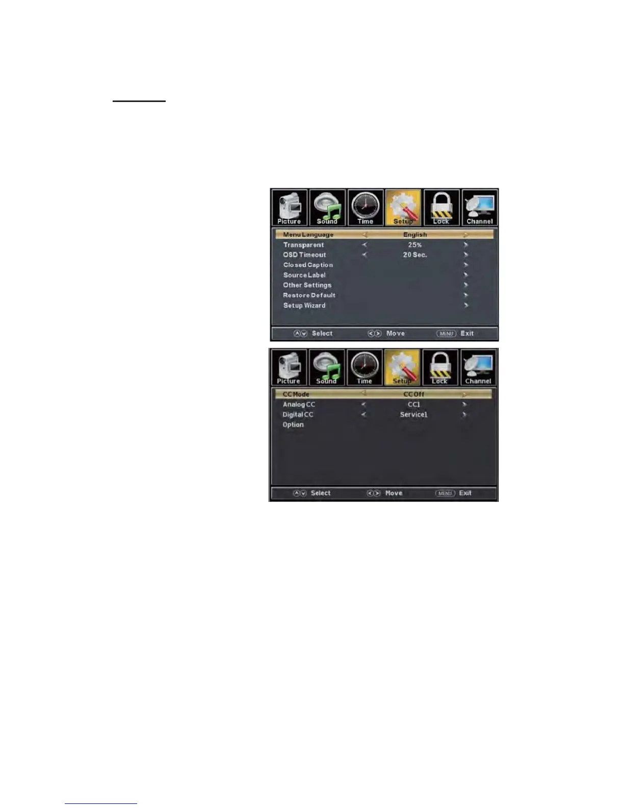 a. Press “c/d” button to select “CC Mode” the “e/f” button to adjust.