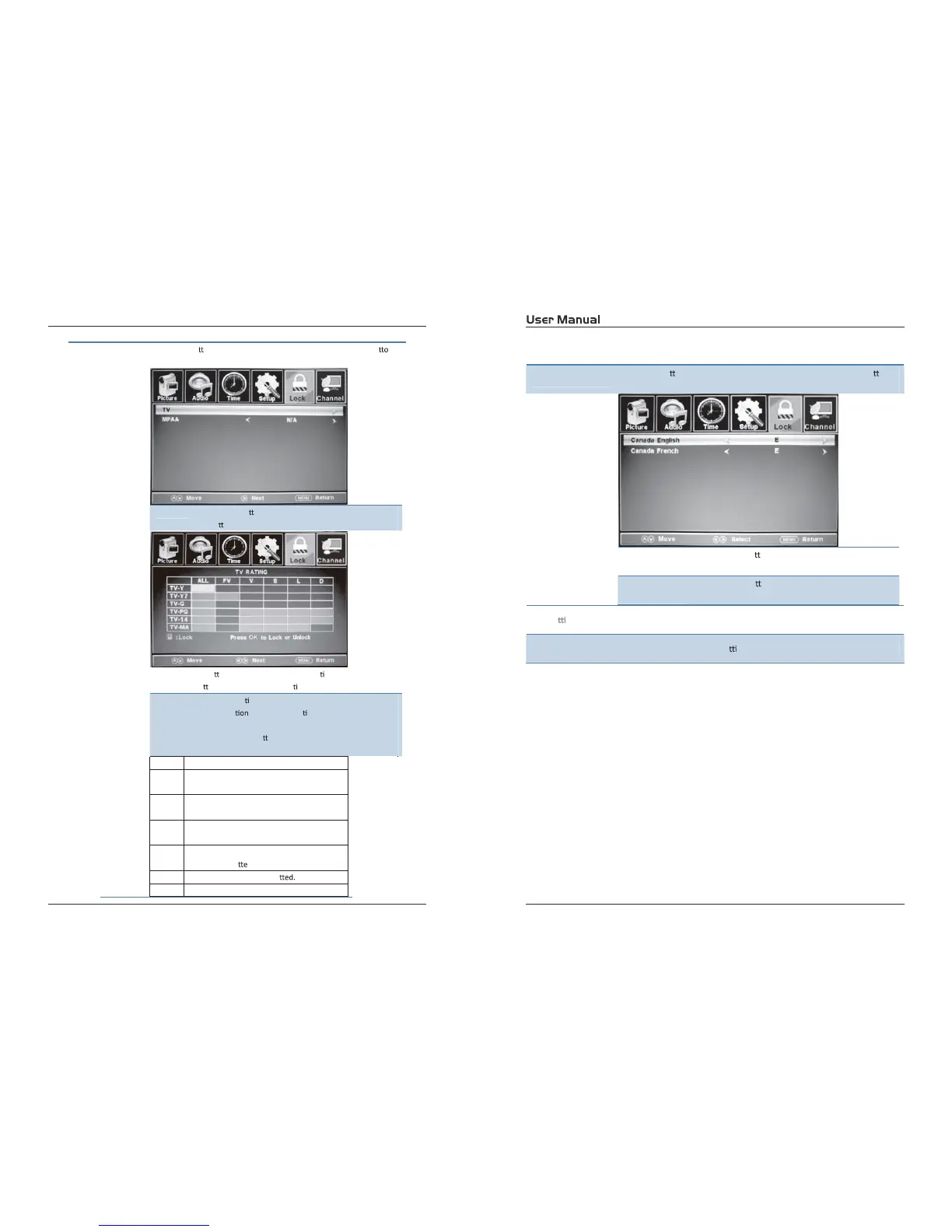 Canada Fre Use the Ż/Ź bu ons to select among: E, G, 8ans+,