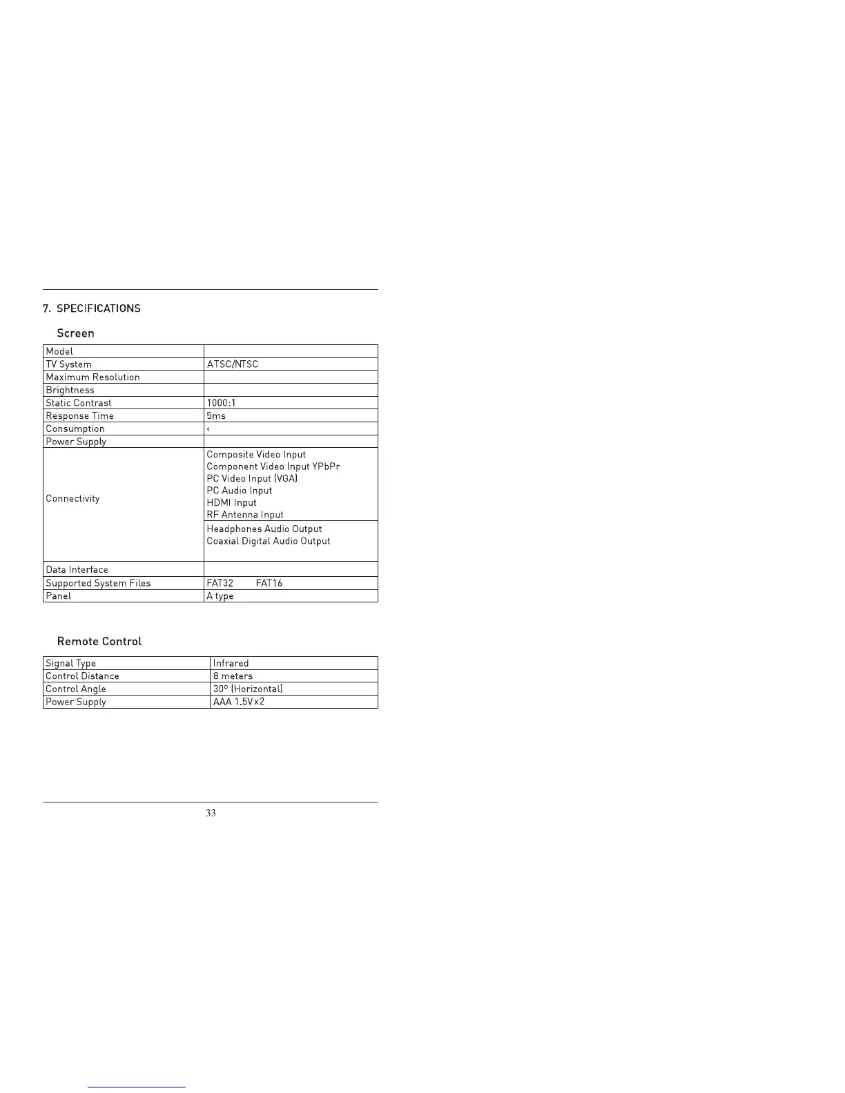 ProScan PLED3792A - Technical Specifications Overview; Screen Specifications Details