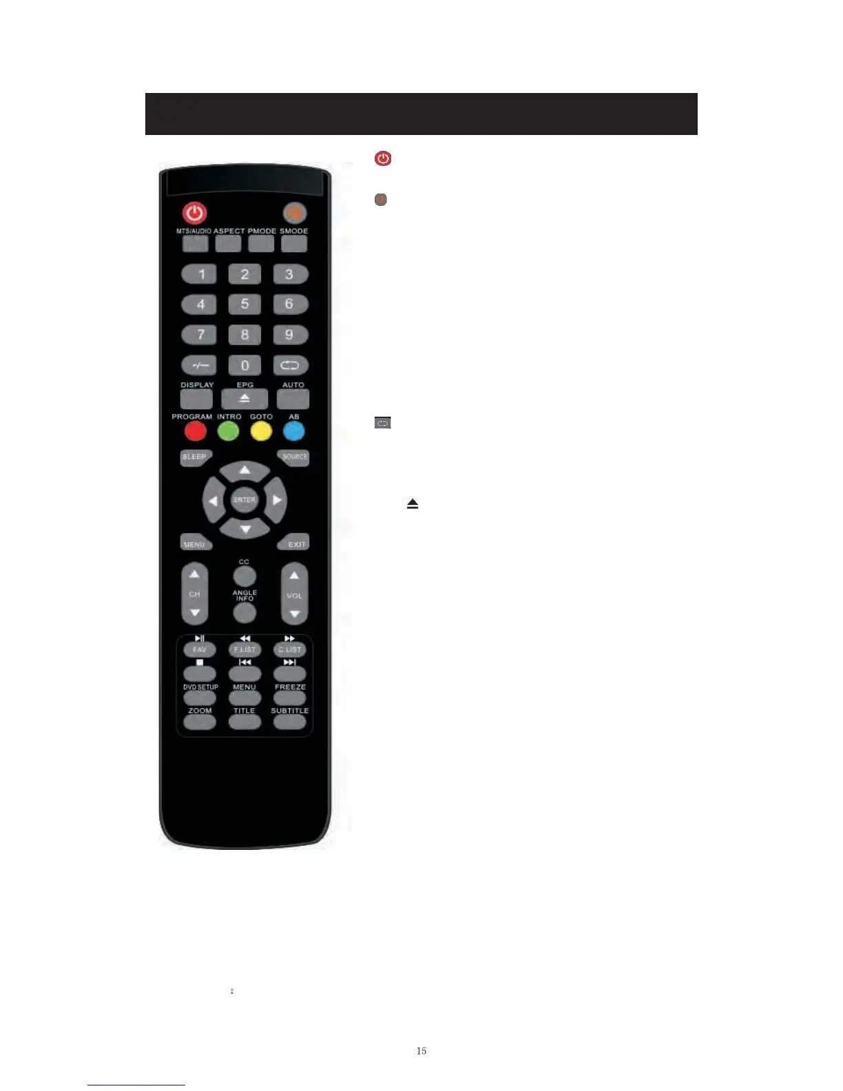 ANGLE/INFO˖Select the angle (Used for models with DVD function only)/ Display some