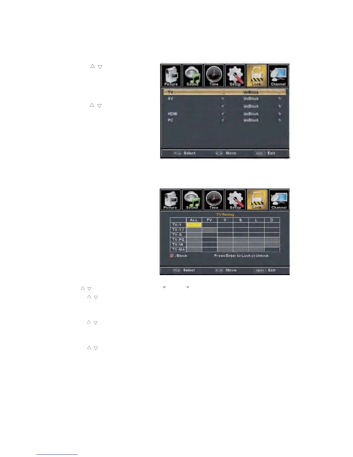 Press “c/d” button to select “US Rating” and press “ENTER/f” button to enter sub-menu.