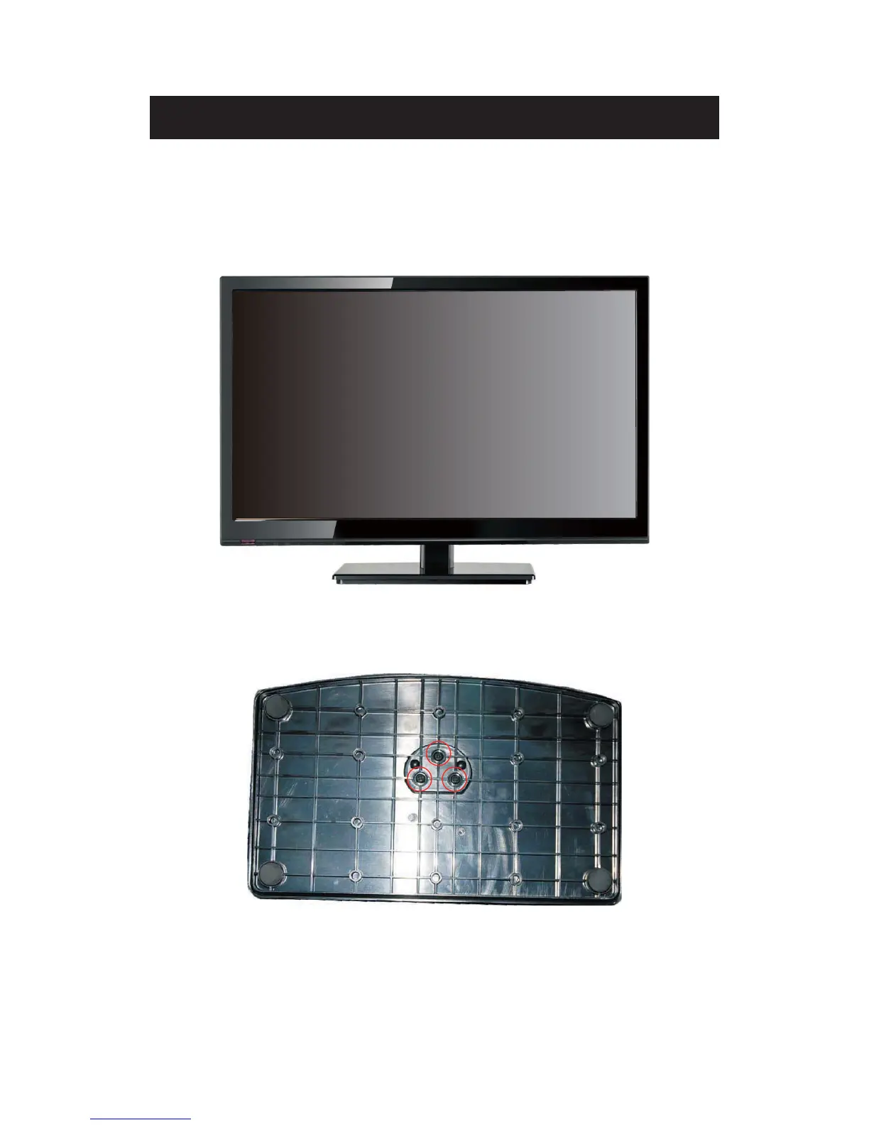 1. To attach the base place the display unit flat on a table. Afterwards attach the stand onto