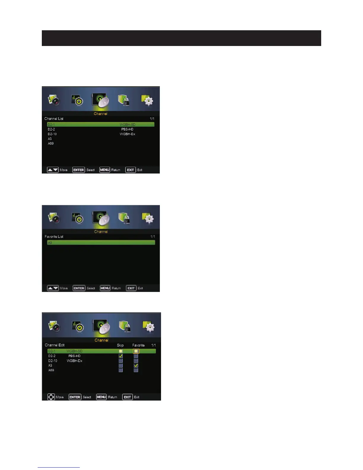 Channel ListPre ss ▼ / ▲ butt on to select , then press Enter / ►button to ente r sub-m enu.