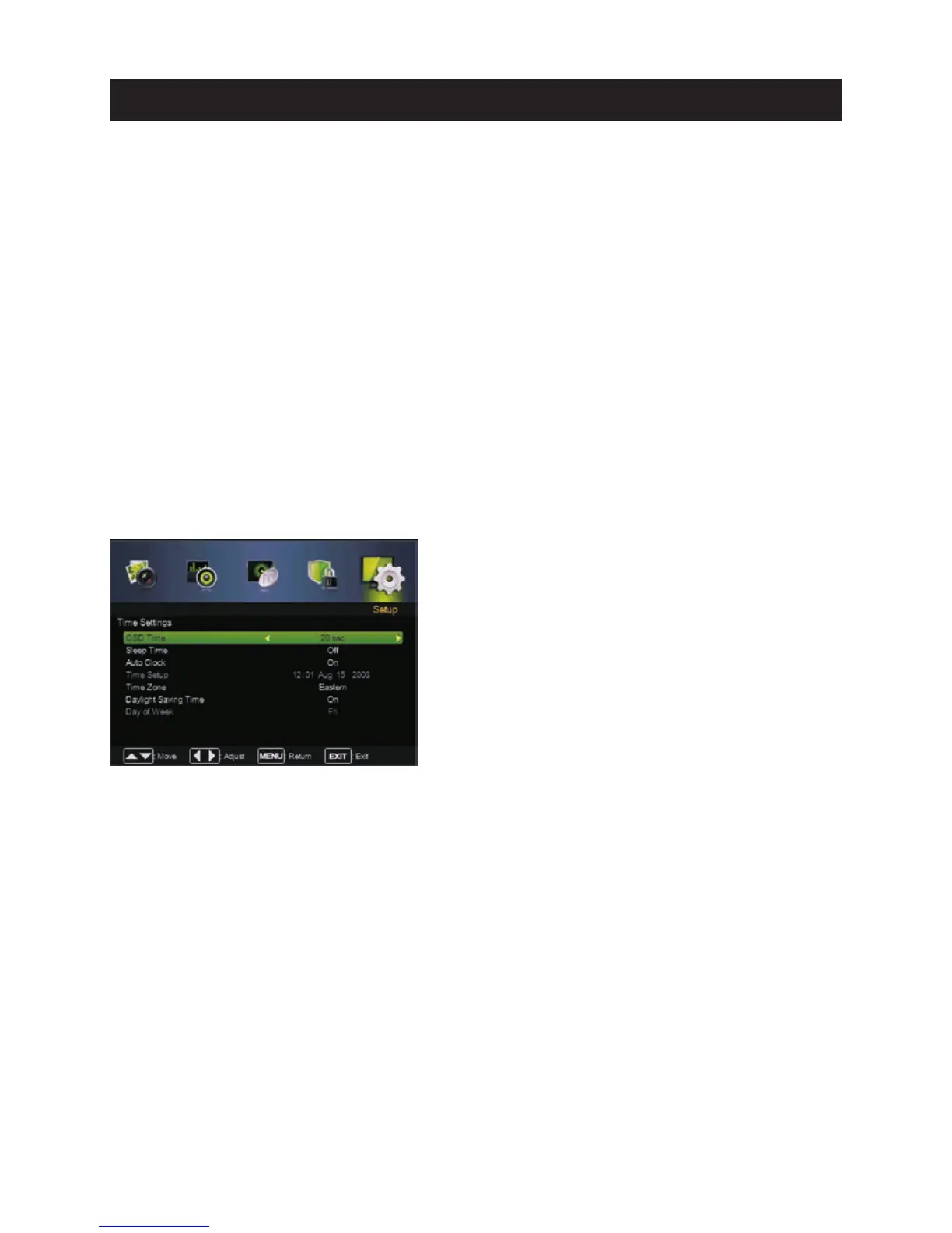 Time Settings Press ▼ / ▲ button to select , then press Enter / ►button to enter sub-menu.