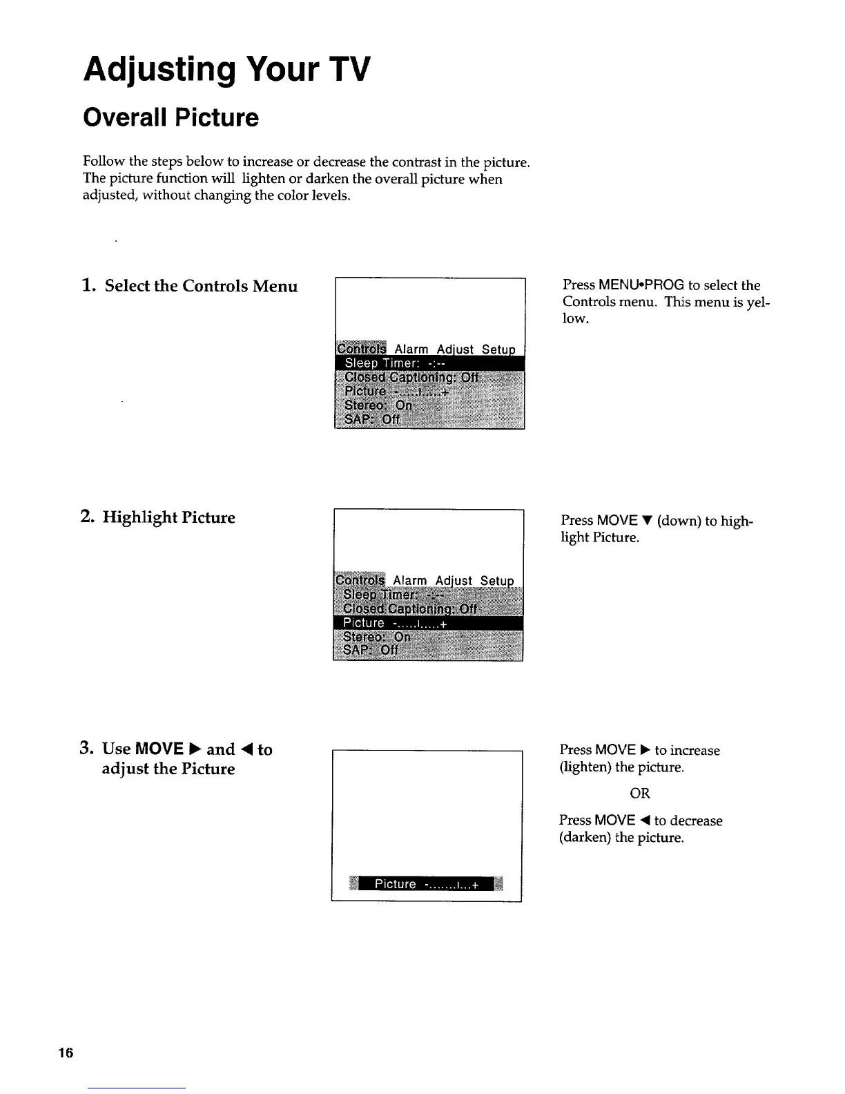 The picture function will lighten or darken the overall picture when