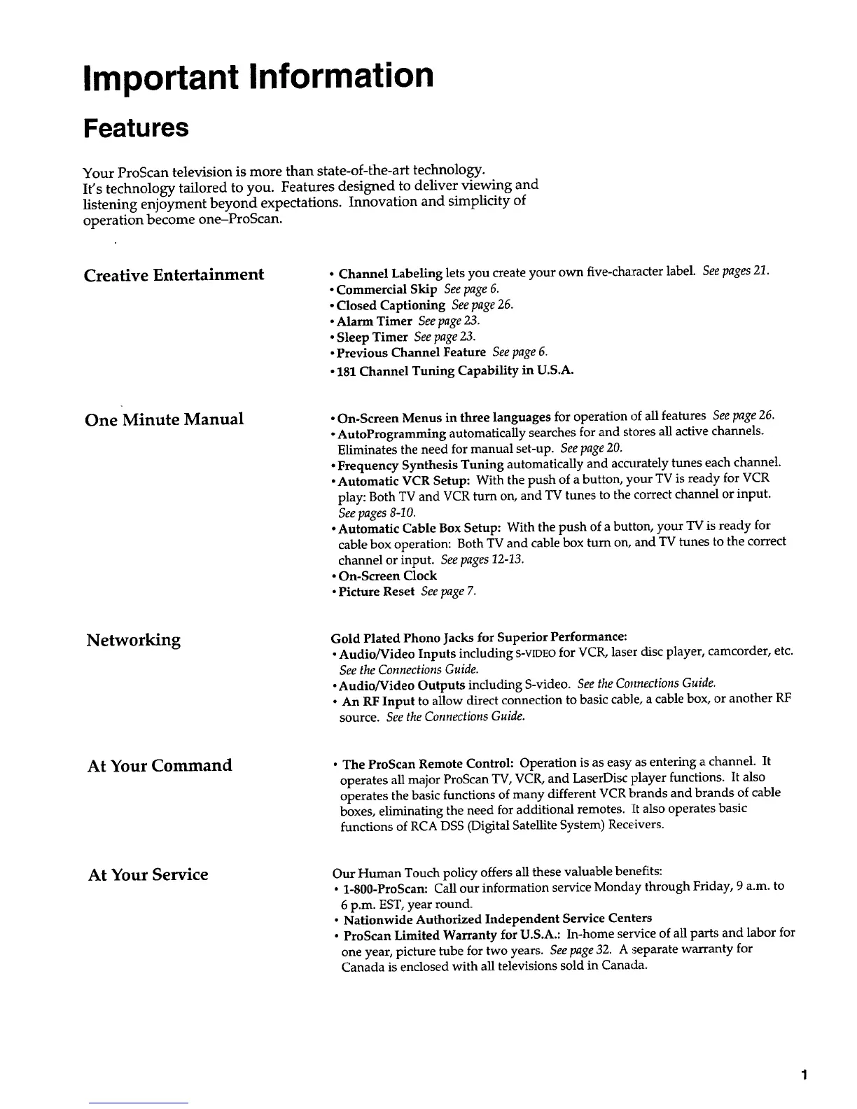• ProScan Limited Warranty for U.S.A.- In-home service of all parts and labor for