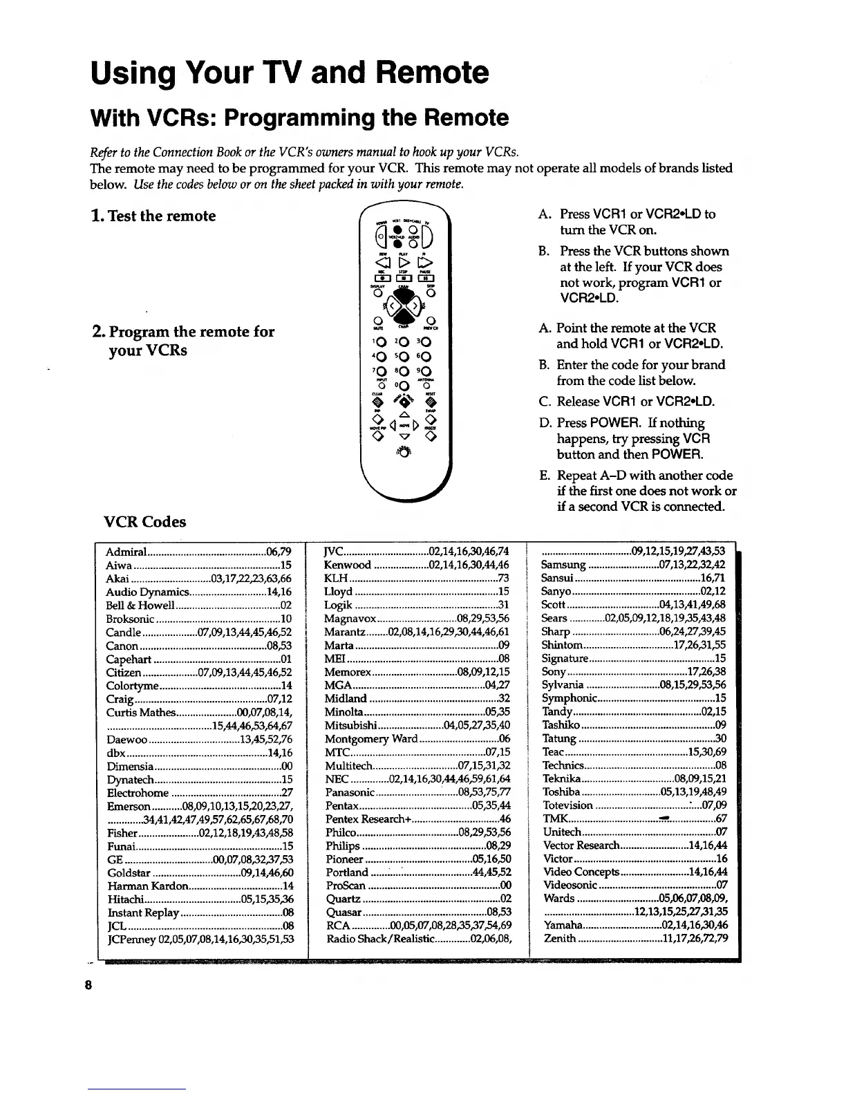 The remote may need to be programmed for your VCR. This remote may not operate all models of brands listed