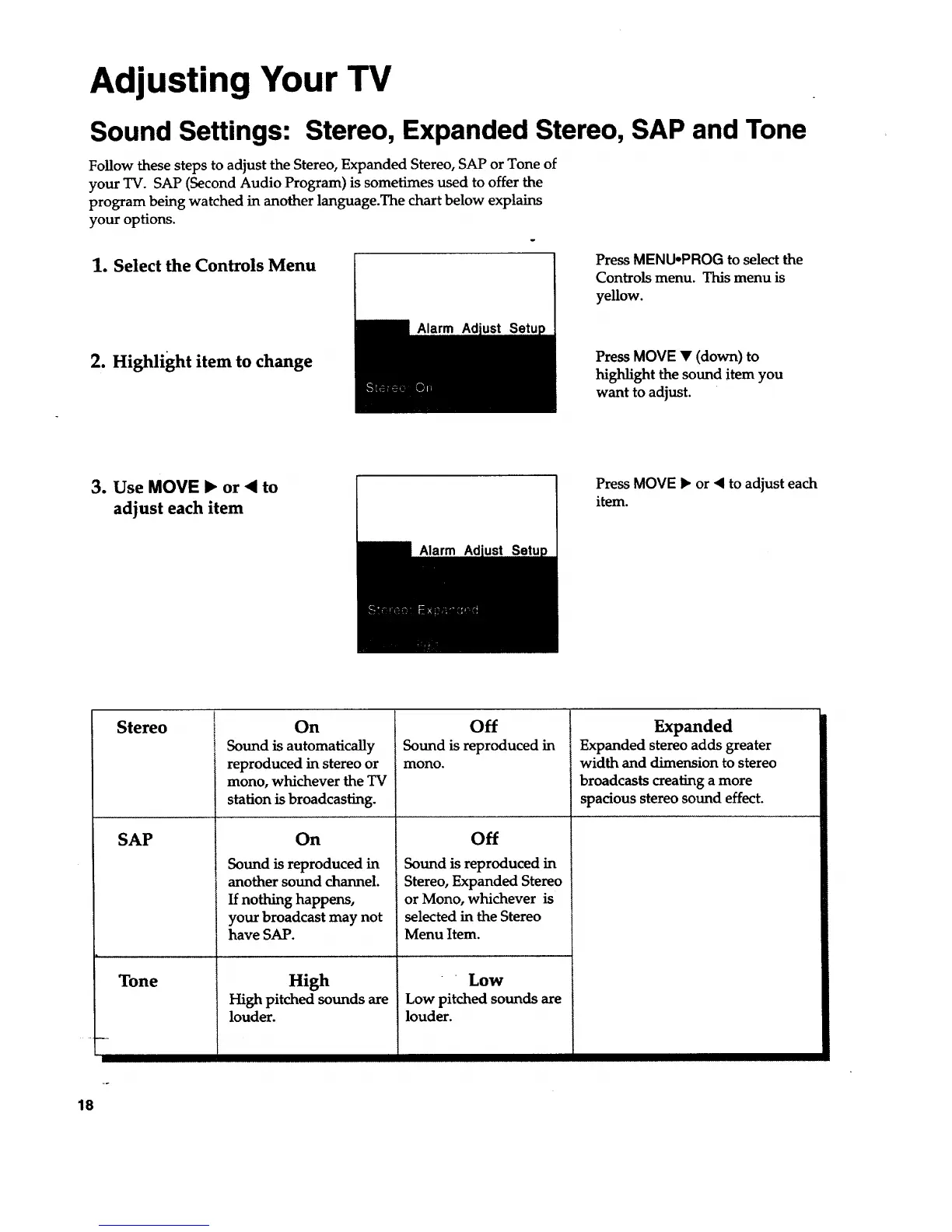 Sound Settings: Stereo, Expanded Stereo, SAP and Tone