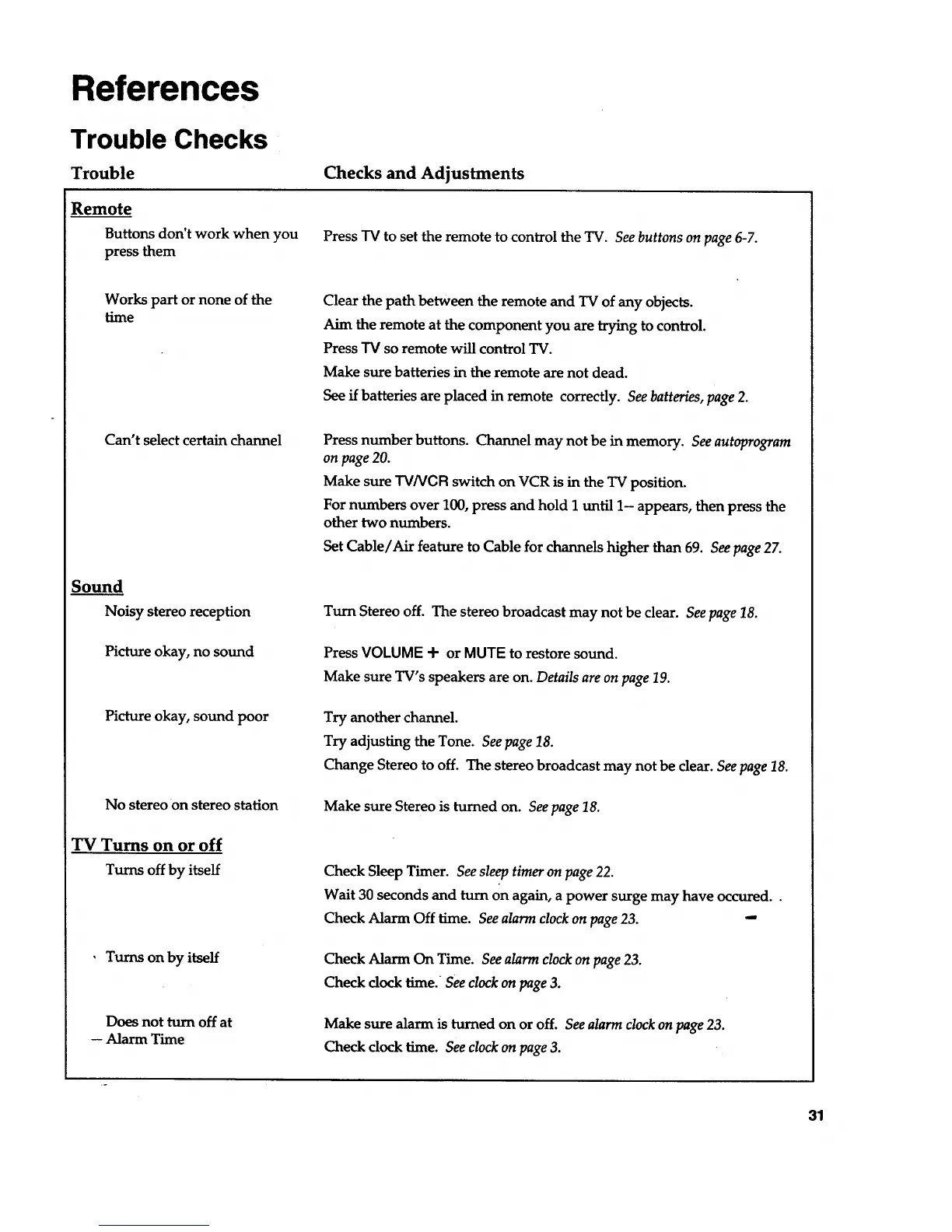 Make sure alarm is turned on or off. See alarm clock on page 23.