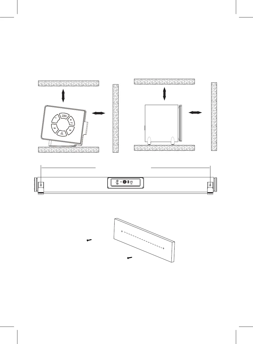 d’environ 0,3 pouce (7 mm) entre la tête de vis et le mur pour suspendre la barre-son.