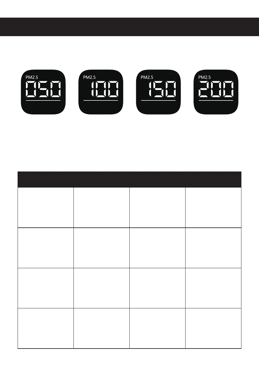 NOTE: PM2.5 air index monitoring will be more accurate after 60 seconds of the turn-on.
