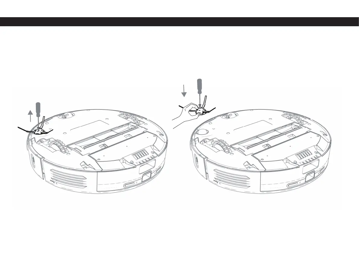 1. Pomocí šroubováku odšroubujte 2 šrouby bočních kartáčů a kartáče vyjměte.
