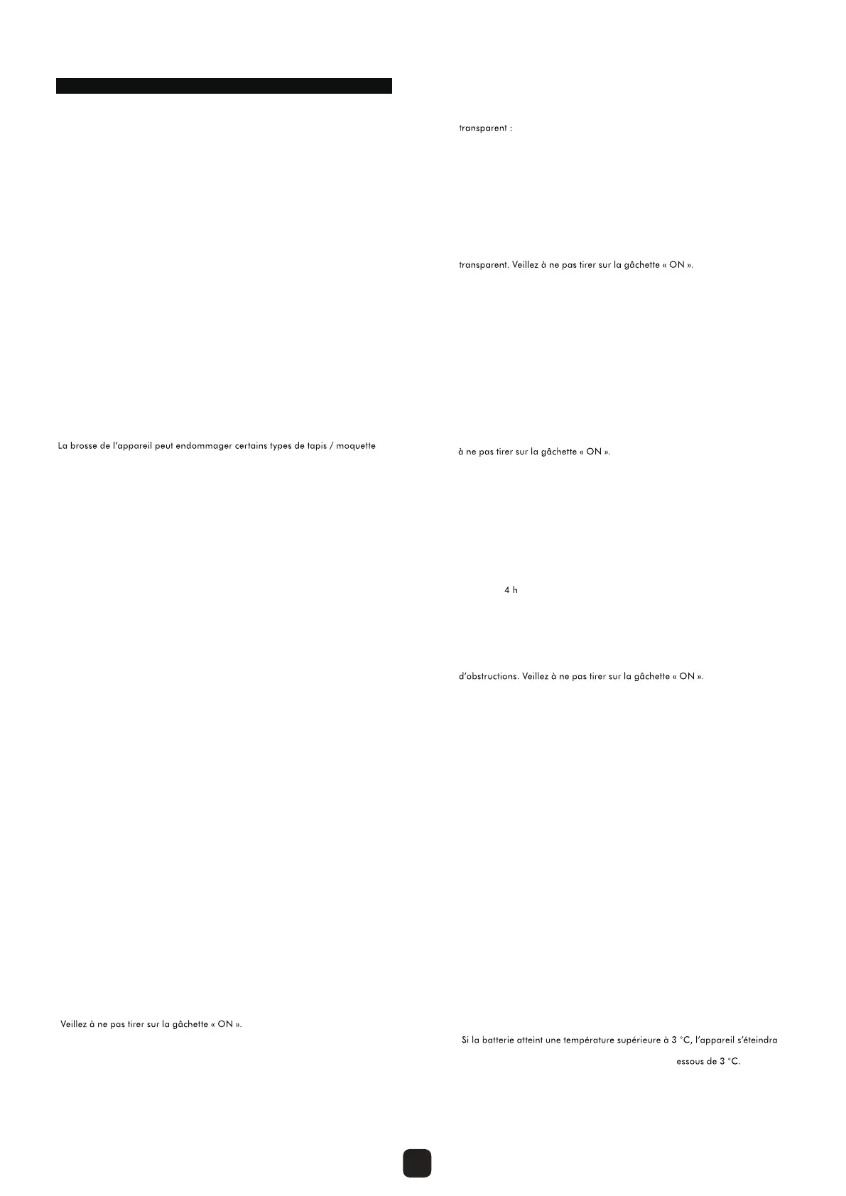 • Lors de l’aspiration, certains tapis peuvent générer de petites charges