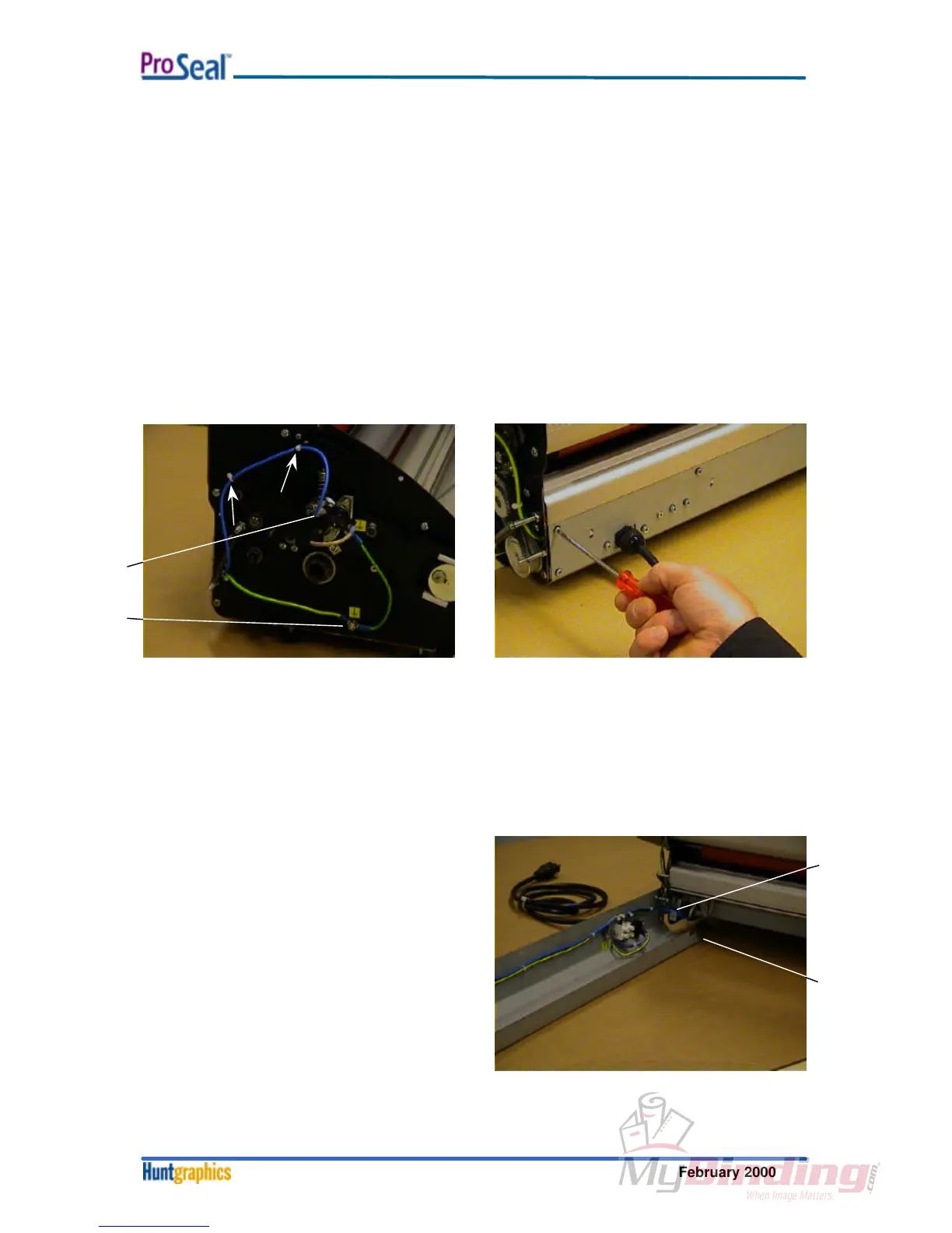 Cut the two tie-wraps (arrows) at the left-hand side of the machine. Remove the blue cable