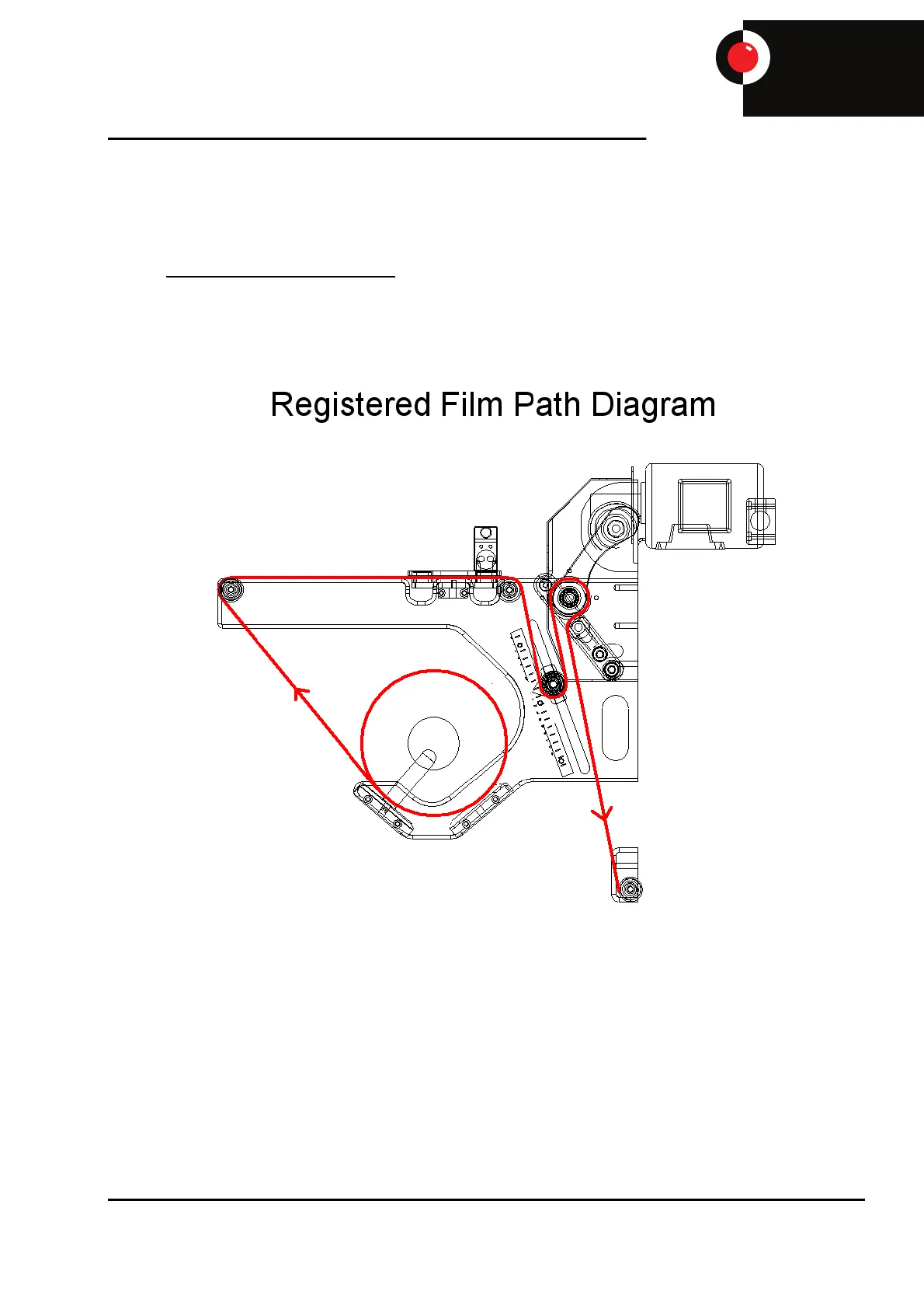 If the GTR machine is fitted with a registered film mechanism, the following film feed path