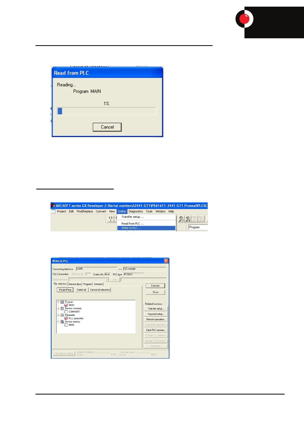 Select ‘Param+Prog’ then ‘Execute’. Click ‘YES’ on the ‘Execute write to PLC’ pop up. Another pop