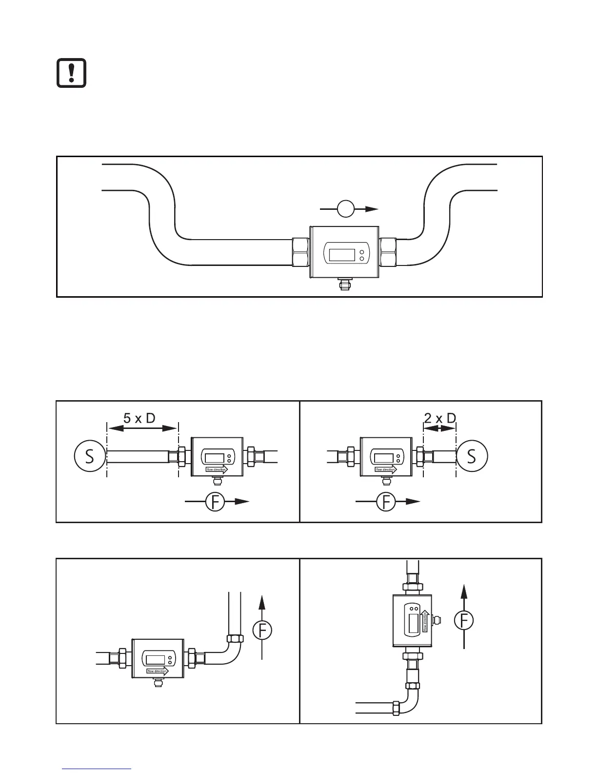 ► Arrange for inlet and outlet pipe lengths. Disturbances caused by bends,