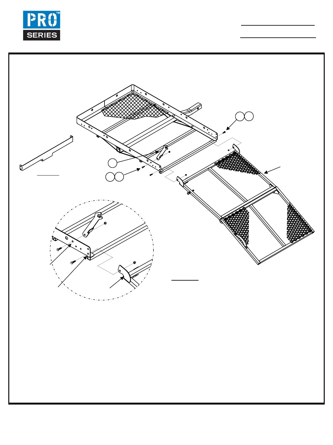 7. To attach the ramp, align the holes in ramp hinges with the bottom holes near the end of basket as shown.