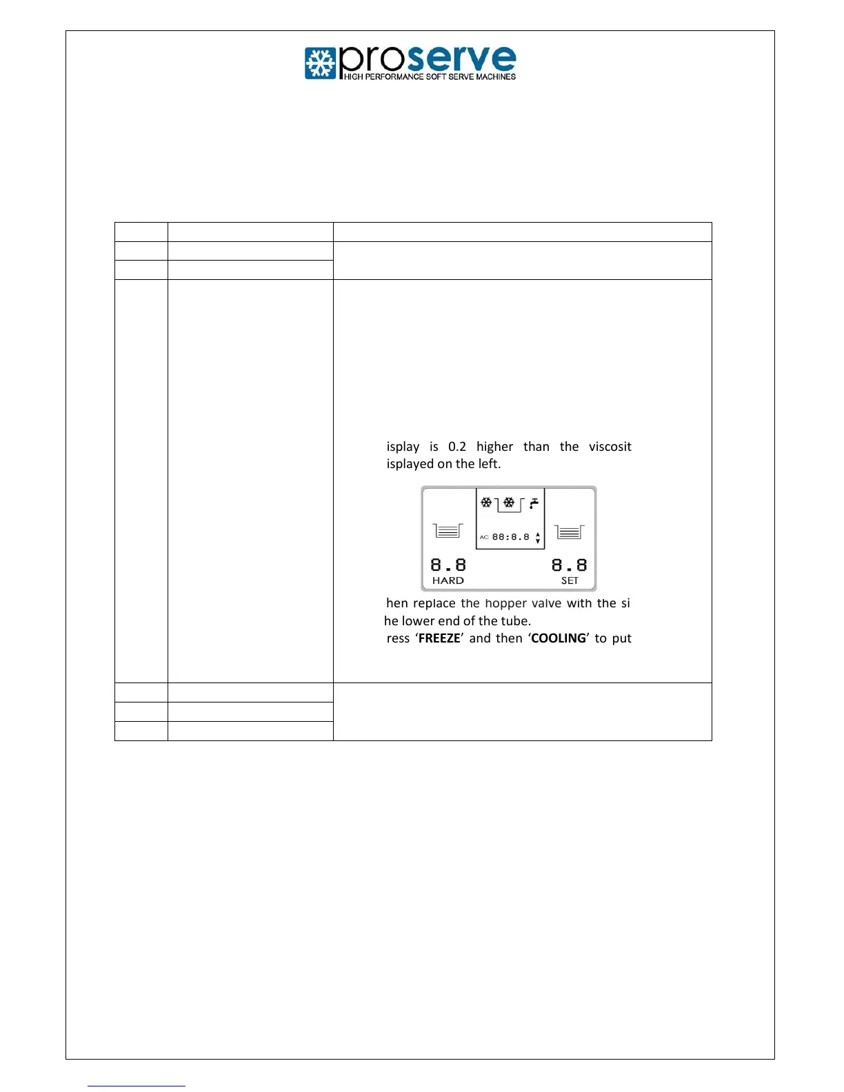 6. Ensure the viscosity (SET) on the right of the LCD