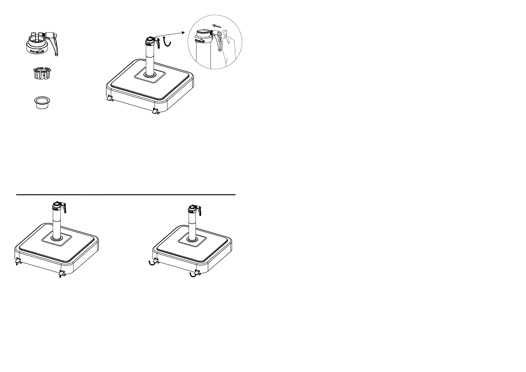 Après avoir choisi l'anneau réducteur approprié, insérez le mât du parasol dans la tige,