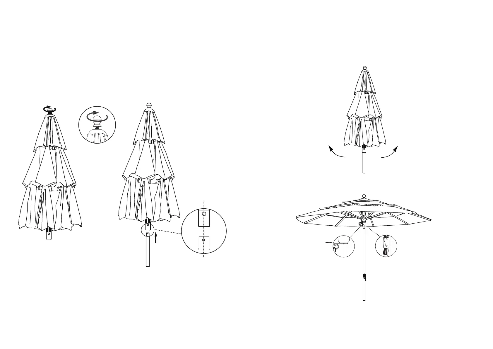 파라솔을 펼치기 전에 우선 파라솔 상부에 피니얼을 부착합니다. 하단 기둥을 상단
