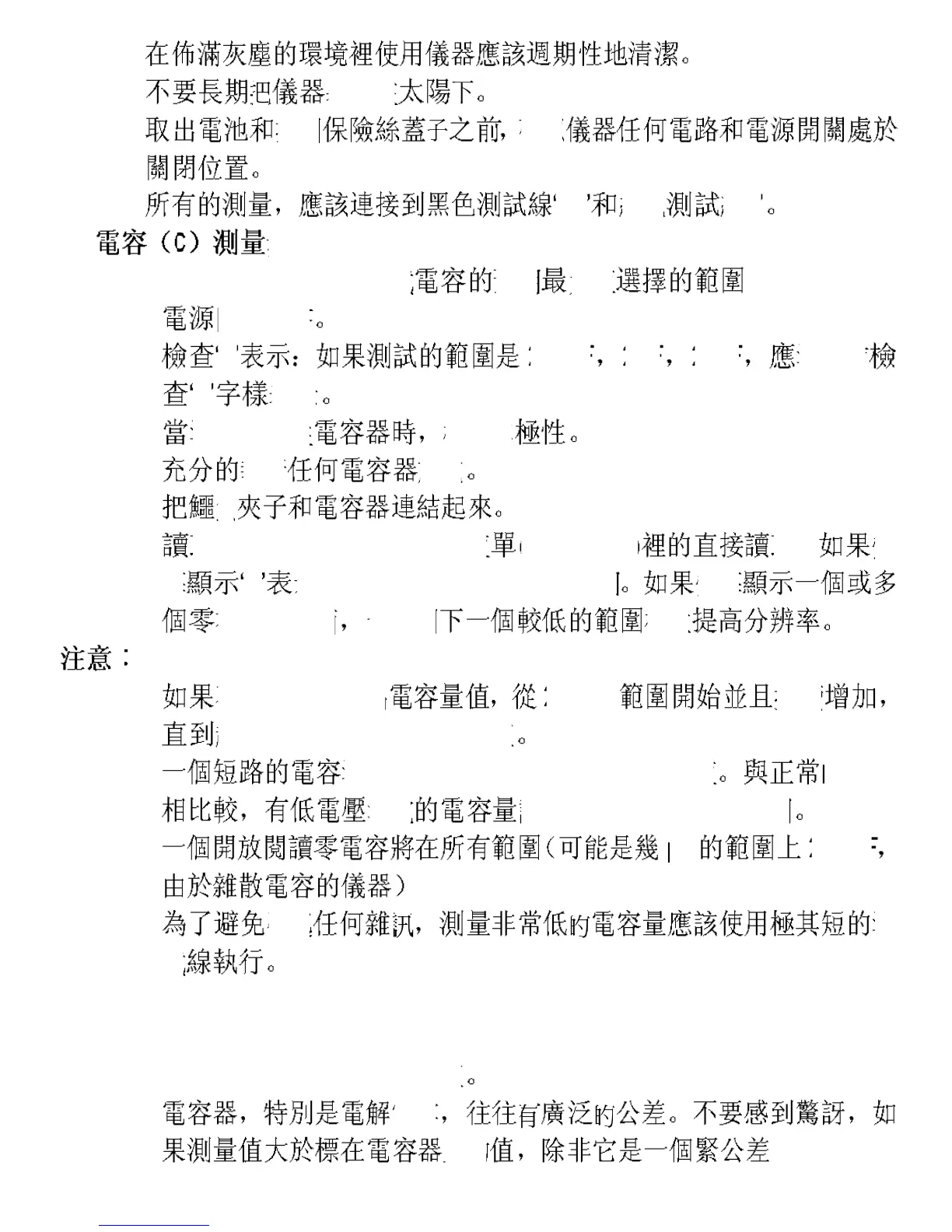 (b) 測量時會顯示超過量測範圍的讀值 的電容