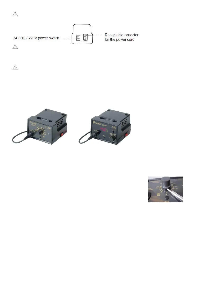 CAUTION: Be sure to turn off the power switch before connecting or disconnecting the soldering iron.