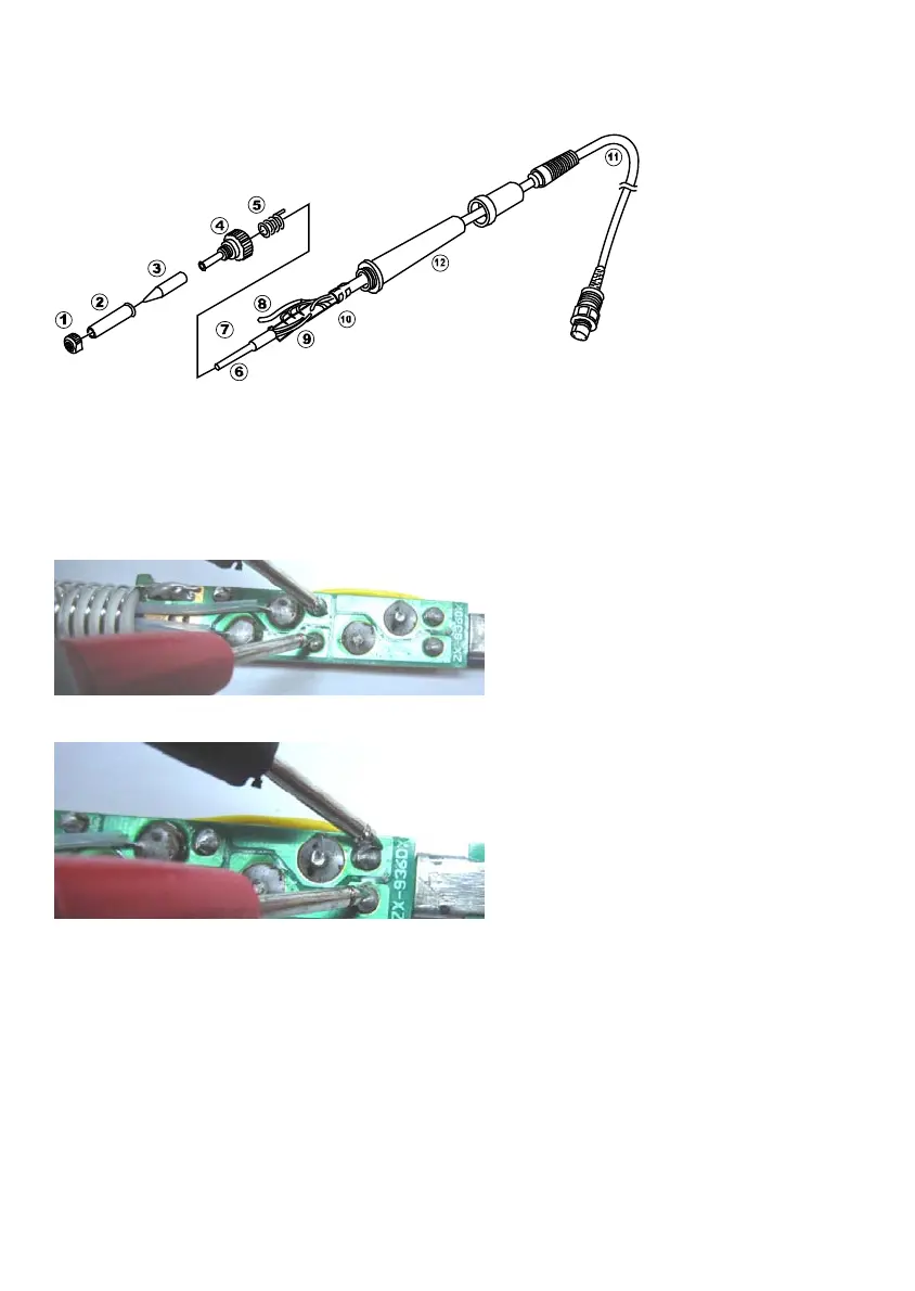 3. Pull both the heating element 6 and the cord assembly 11 out of the handle 12. (Toward the tip of the