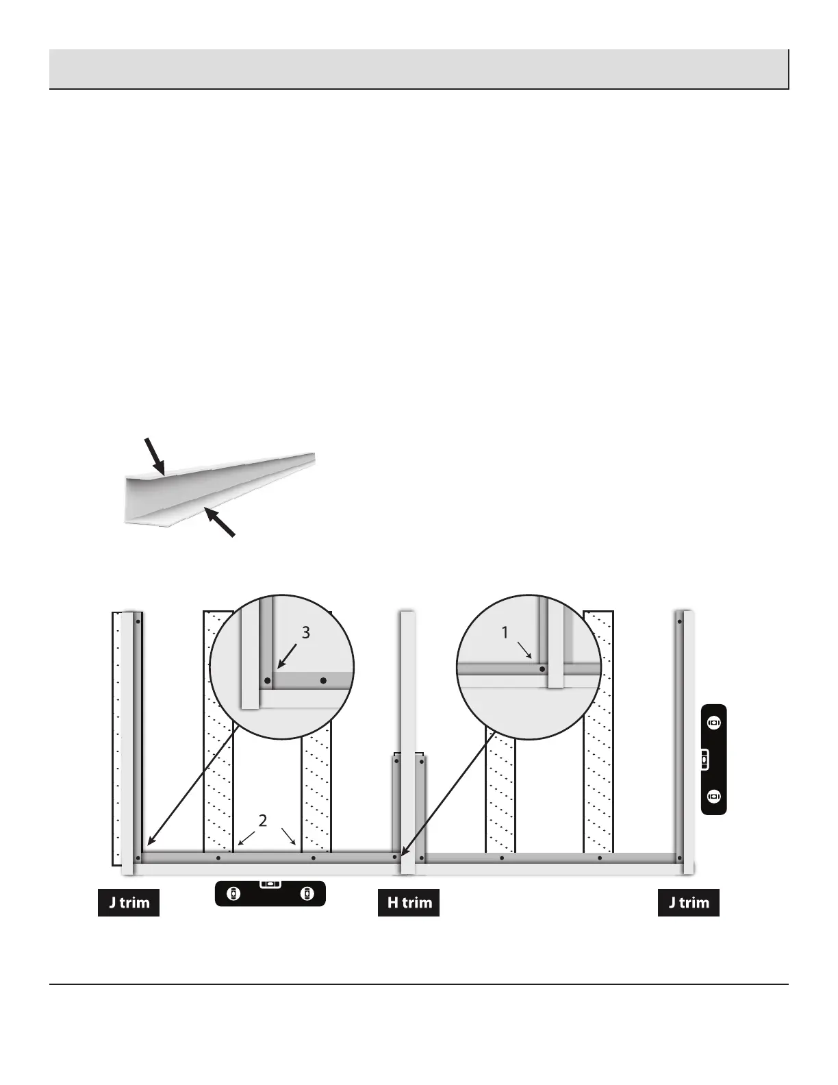 □ Overlap one of your bottom J-trims with the bottom of your H-trim and screw through both. (number 1 on the illustration)