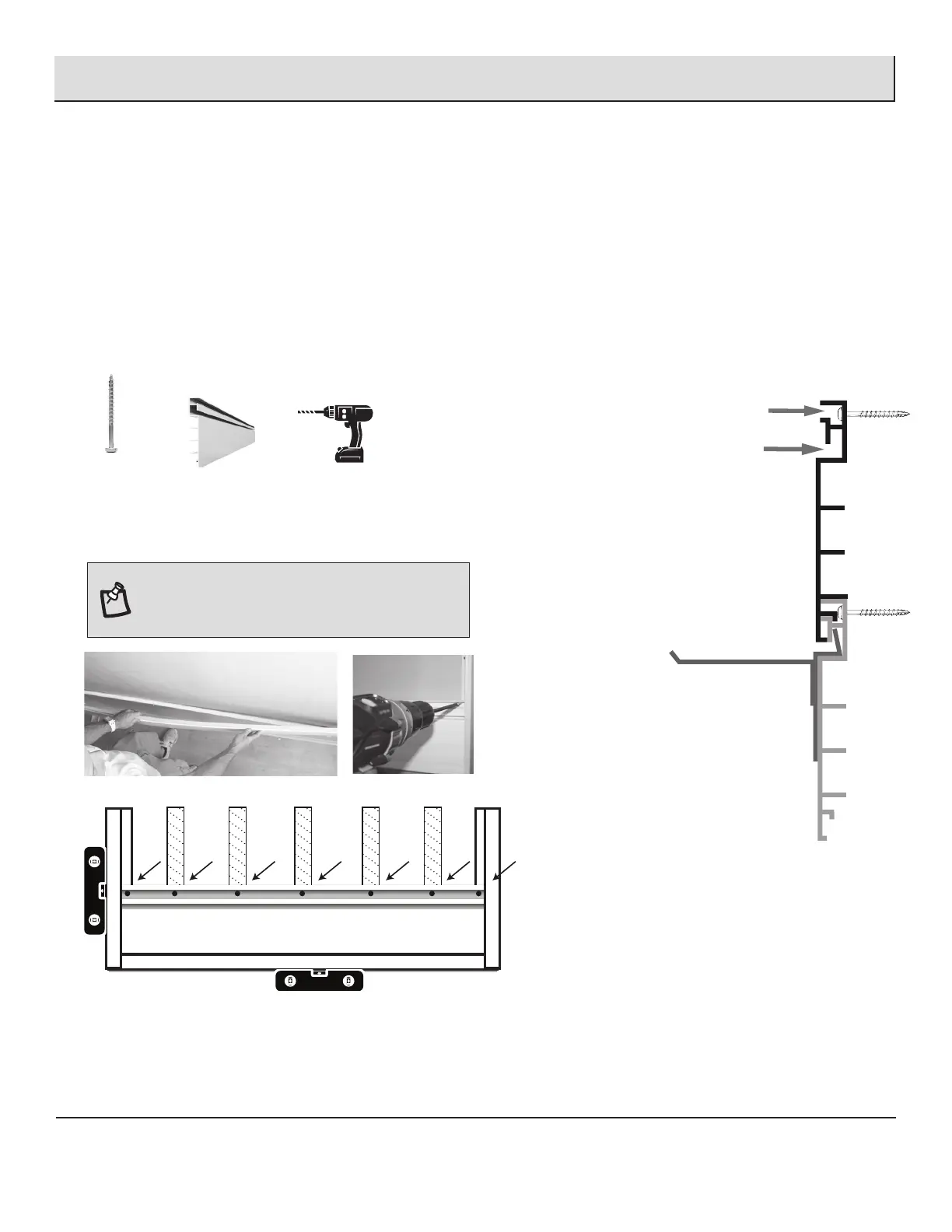 supérieure du panneau dans chaque montant (16 po d’écart). Les vis aux extrémités du panneau doivent traverser le panneau, la