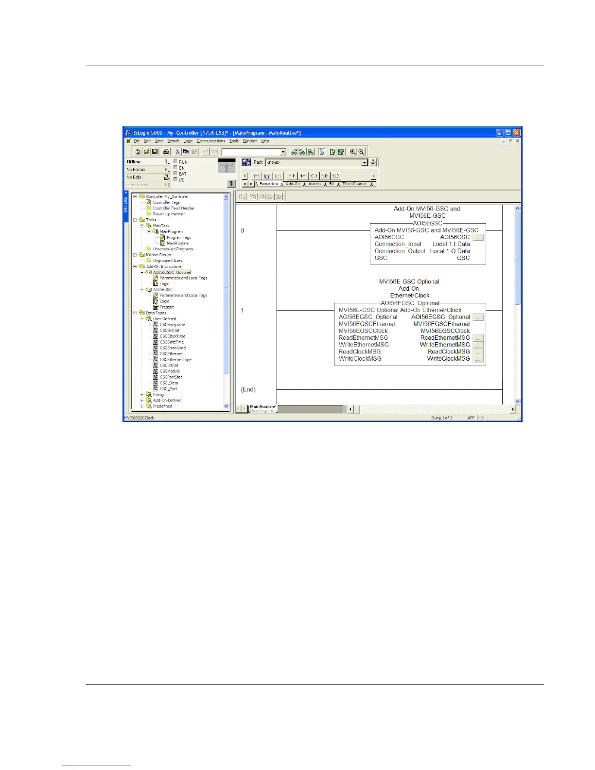 The Optional Add-On Instruction will be now visible in the ladder logic.