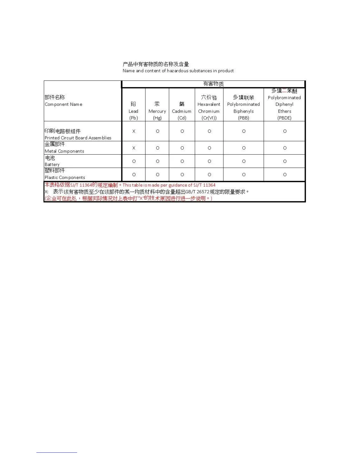 China RoHS Hazardous Material Declaration Table