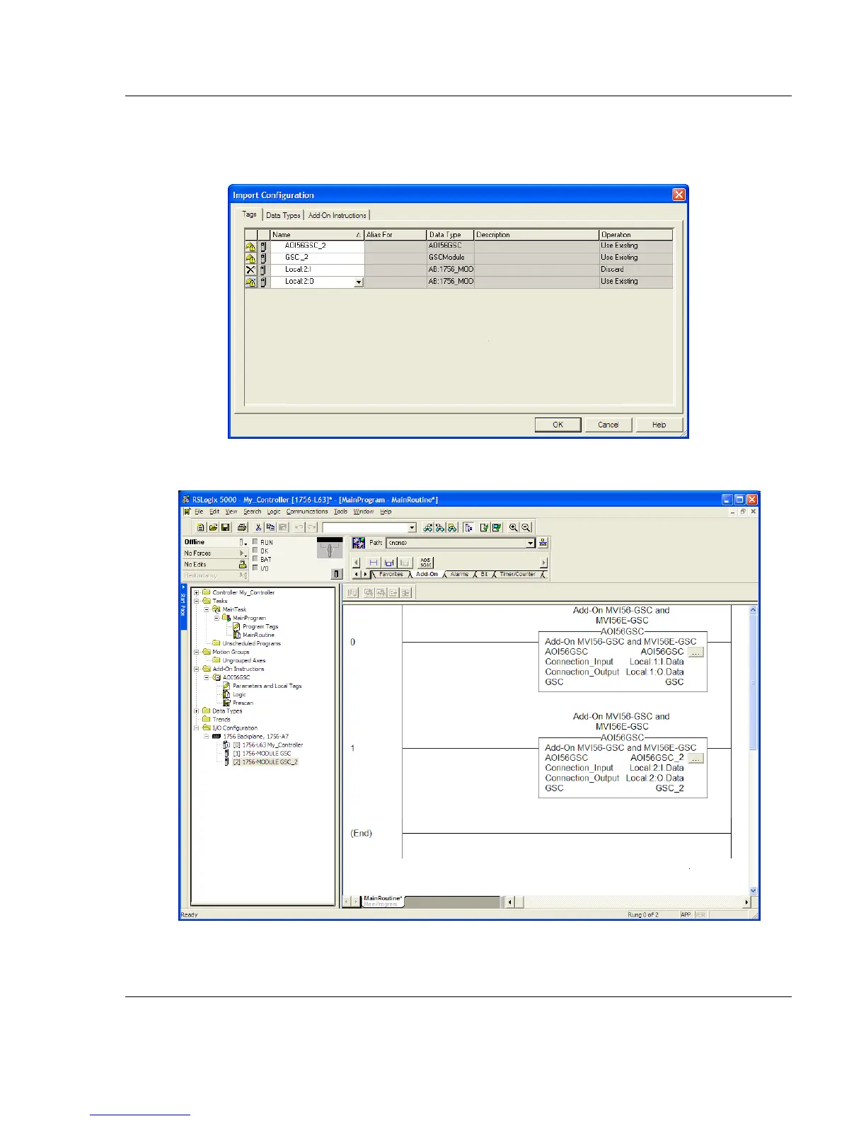 Change the default tag names AOI56GSC and GSC to avoid conflict with