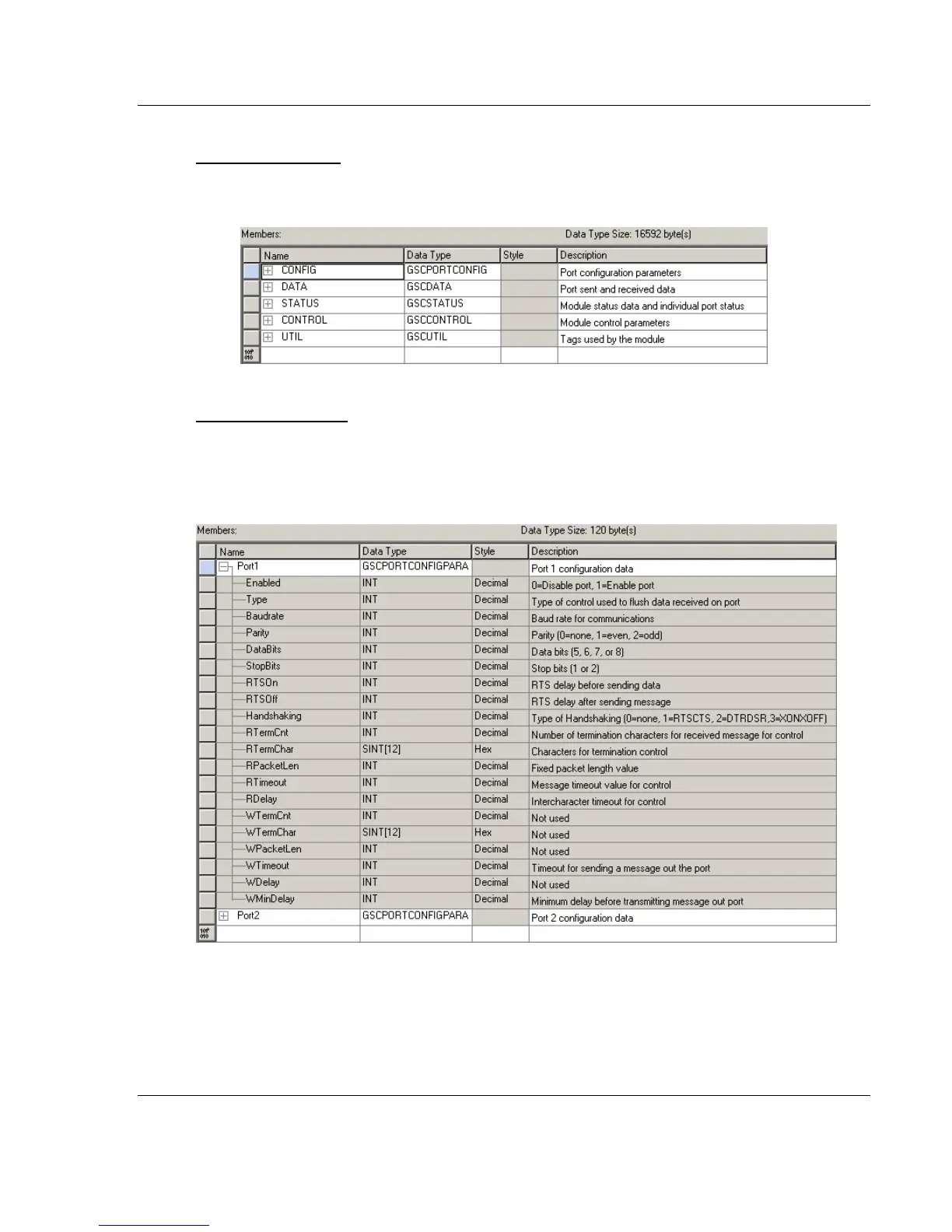 organize and hold port configuration data for both ports. This data type uses one