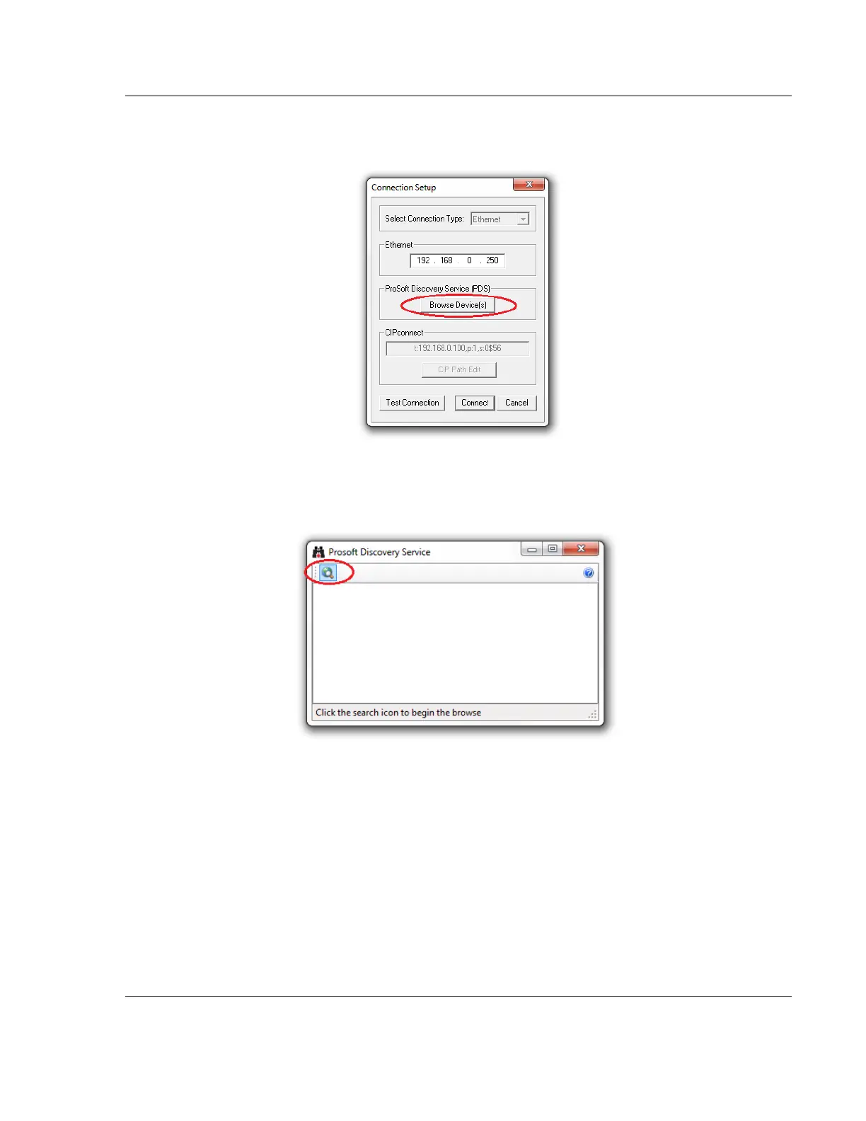 4 In the ProSoft Discovery Service dialog box, click on the BROWSE FOR