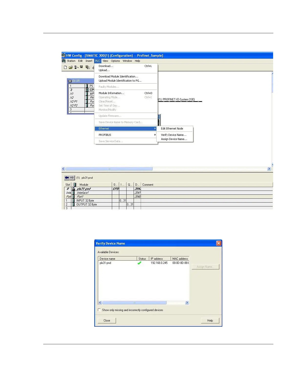 11 If the module is correctly configured, the following appears. If the status is not