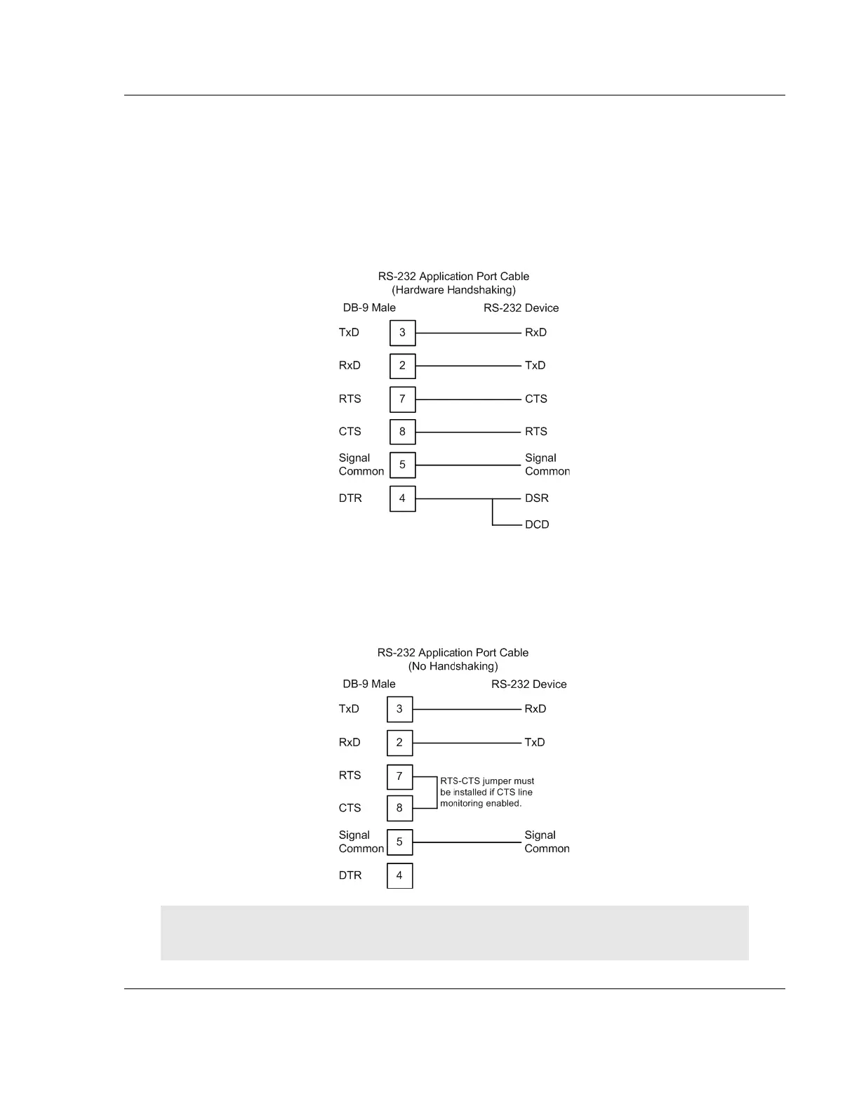 Note: If the port is configured to use RTS/CTS handshaking, then a jumper is required between the