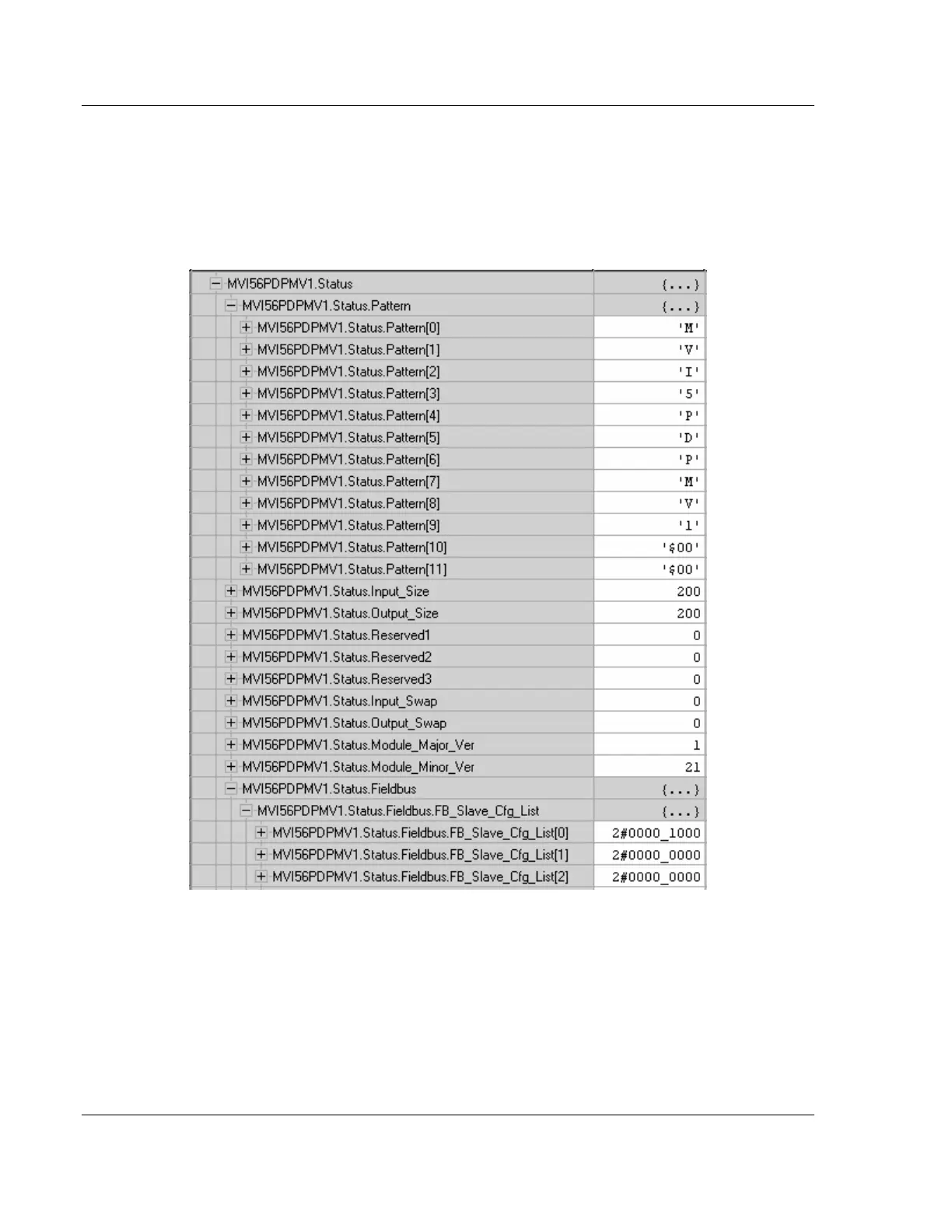 The status data retrieved from the module is stored in the MVI56PDPMV1.Status