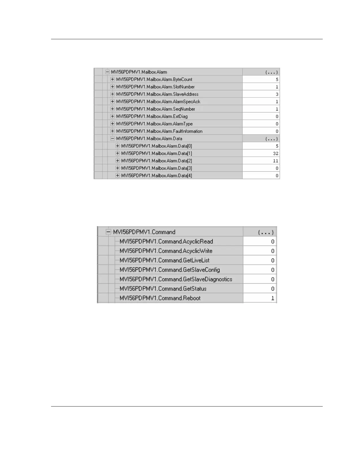 The alarm data will be stored in the MVI56PDPMV1.Mailbox.Alarm controller tag